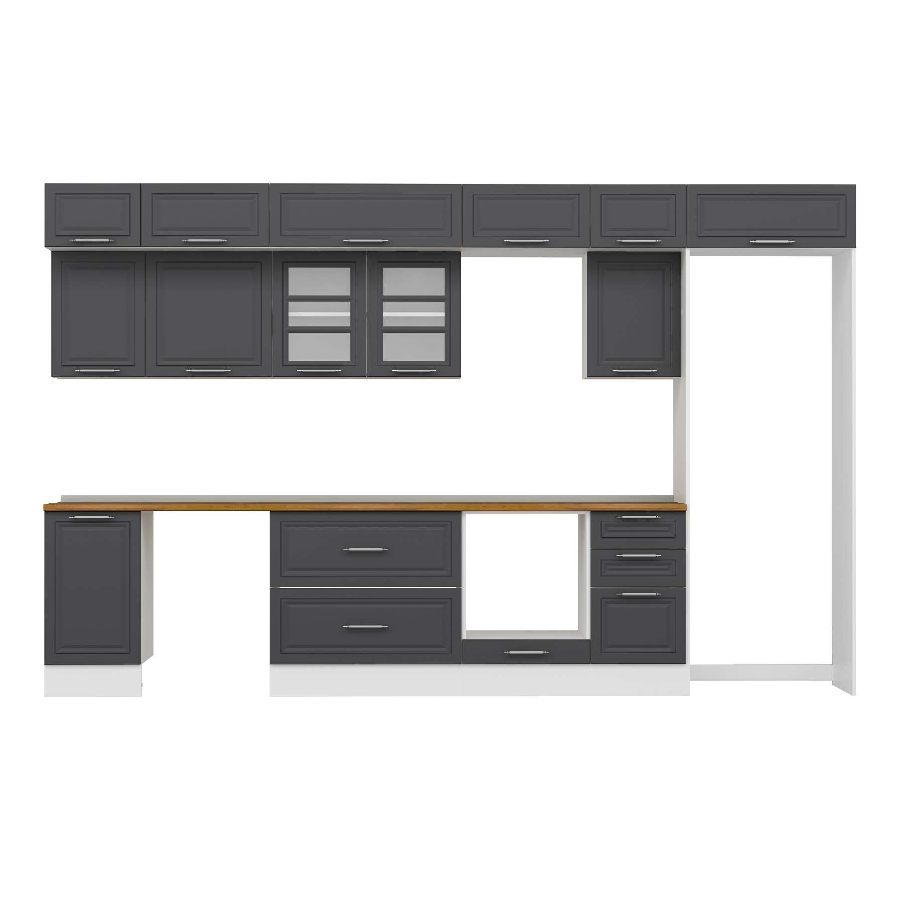 Alvinka 370X240 Cm Klasik Mebran Mutfak Dolabı Mb-E80S45S45-3 Mebran | Antrasit - Mdf