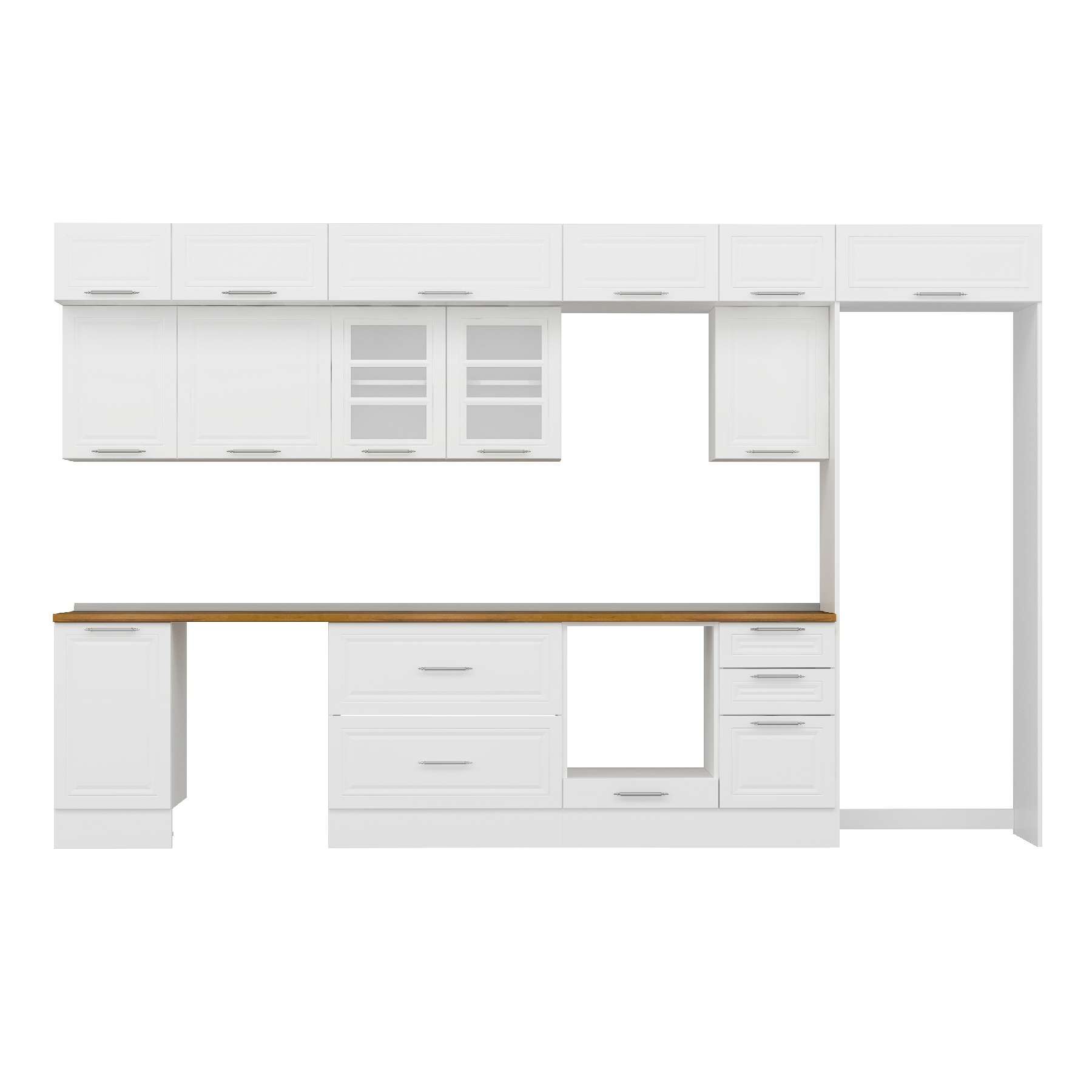 Alvinka 370X240 Cm Klasik Mebran Mutfak Dolabı Mb-E80S45S45-3 Mebran | Beyaz - Mdf