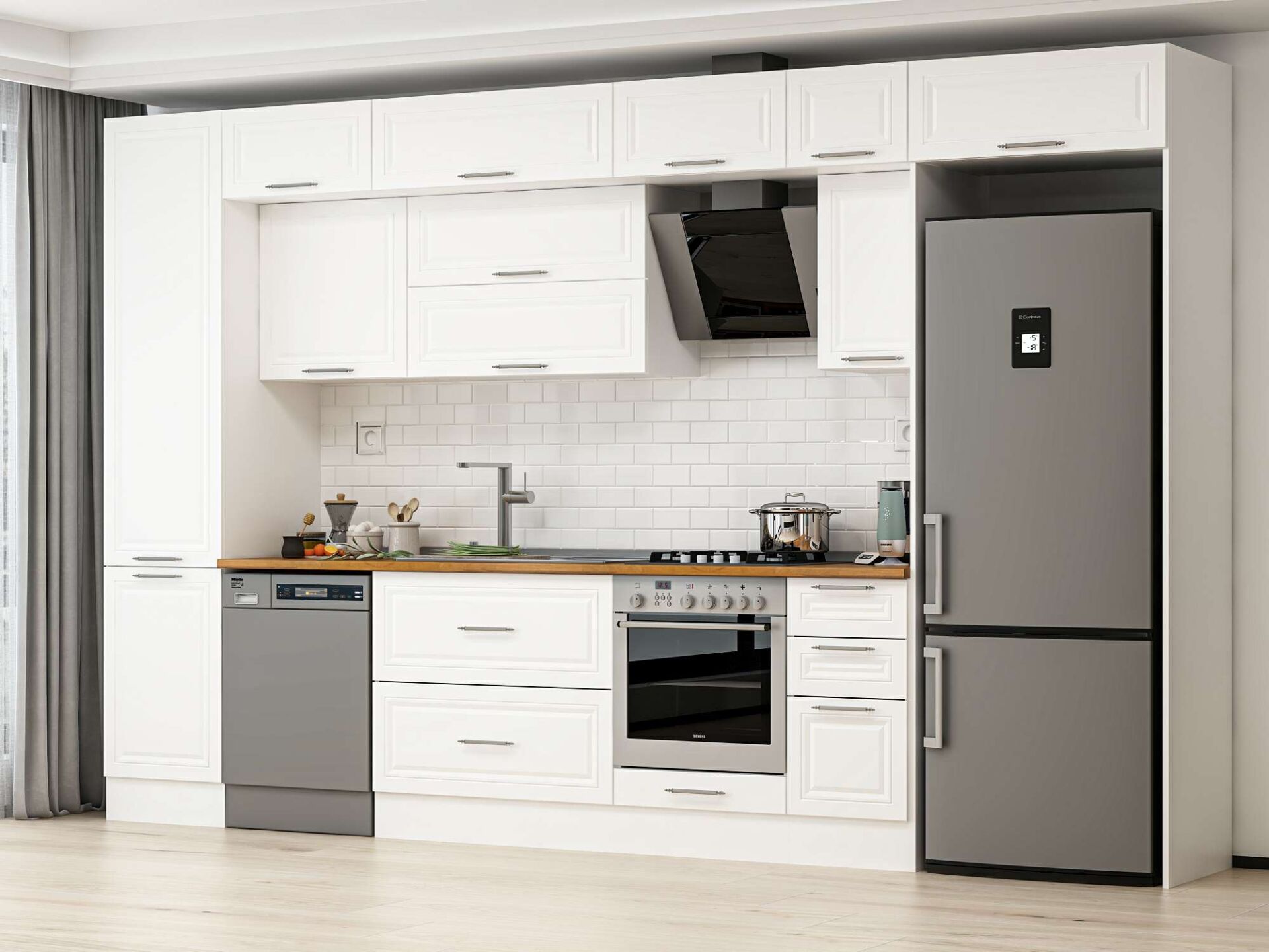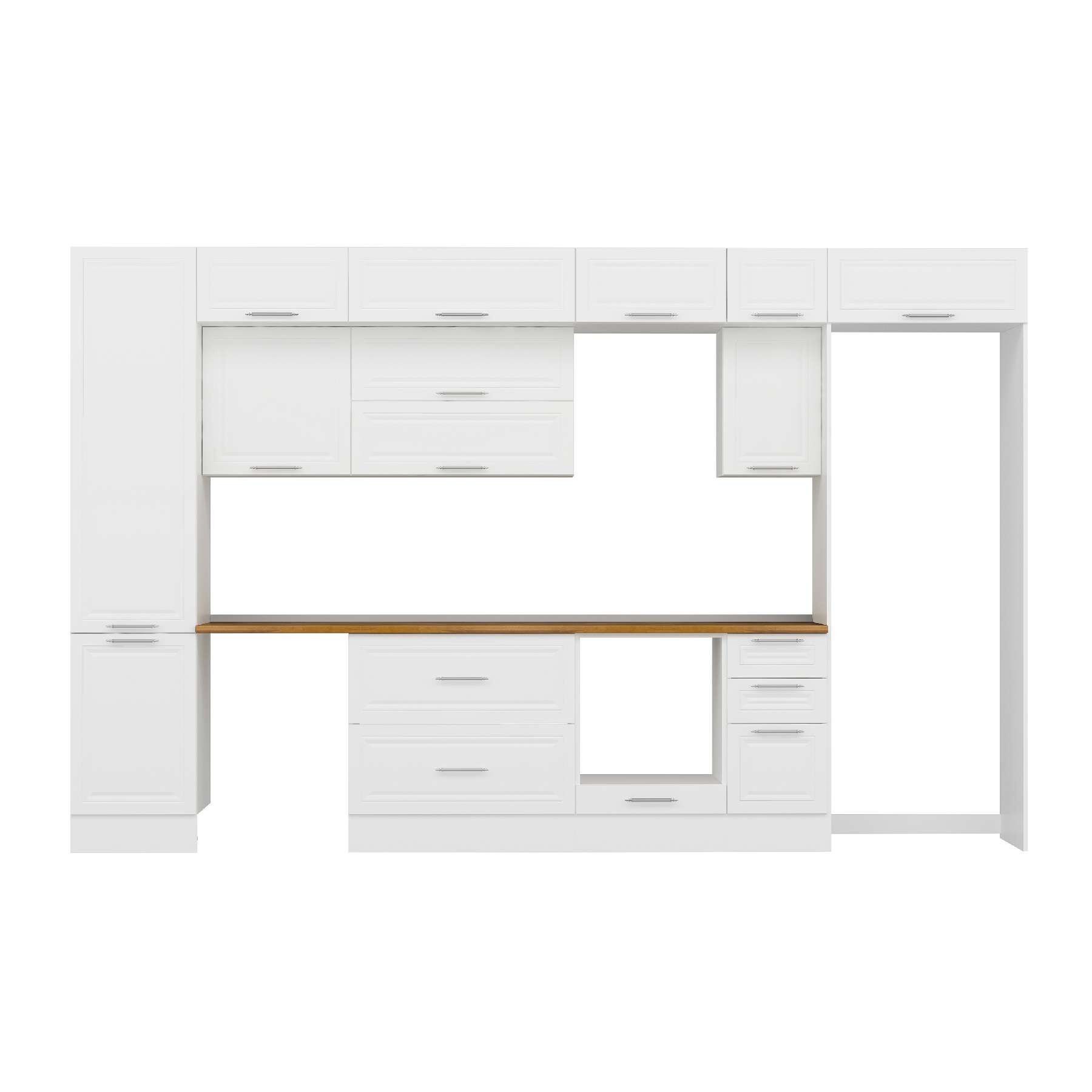 Alvinka 370X240 Cm Klasik Mebran Mutfak Dolabı Mbb-E80B50S40-2 Mebran | Beyaz - Mdf