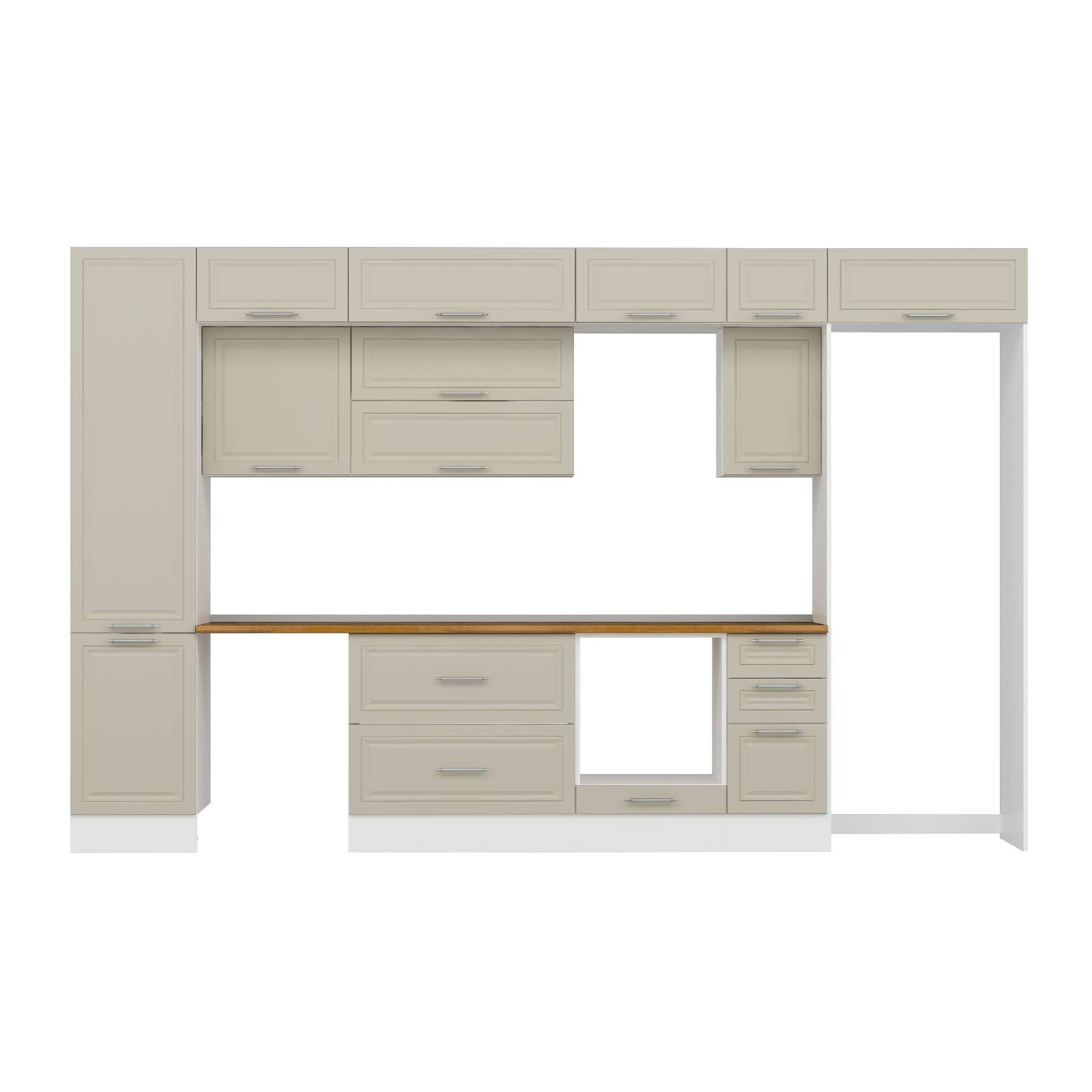 Alvinka 370X240 Cm Klasik Mebran Mutfak Dolabı Mbb-E80B50S40-2 Mebran | Kumtaşı - Suntalam