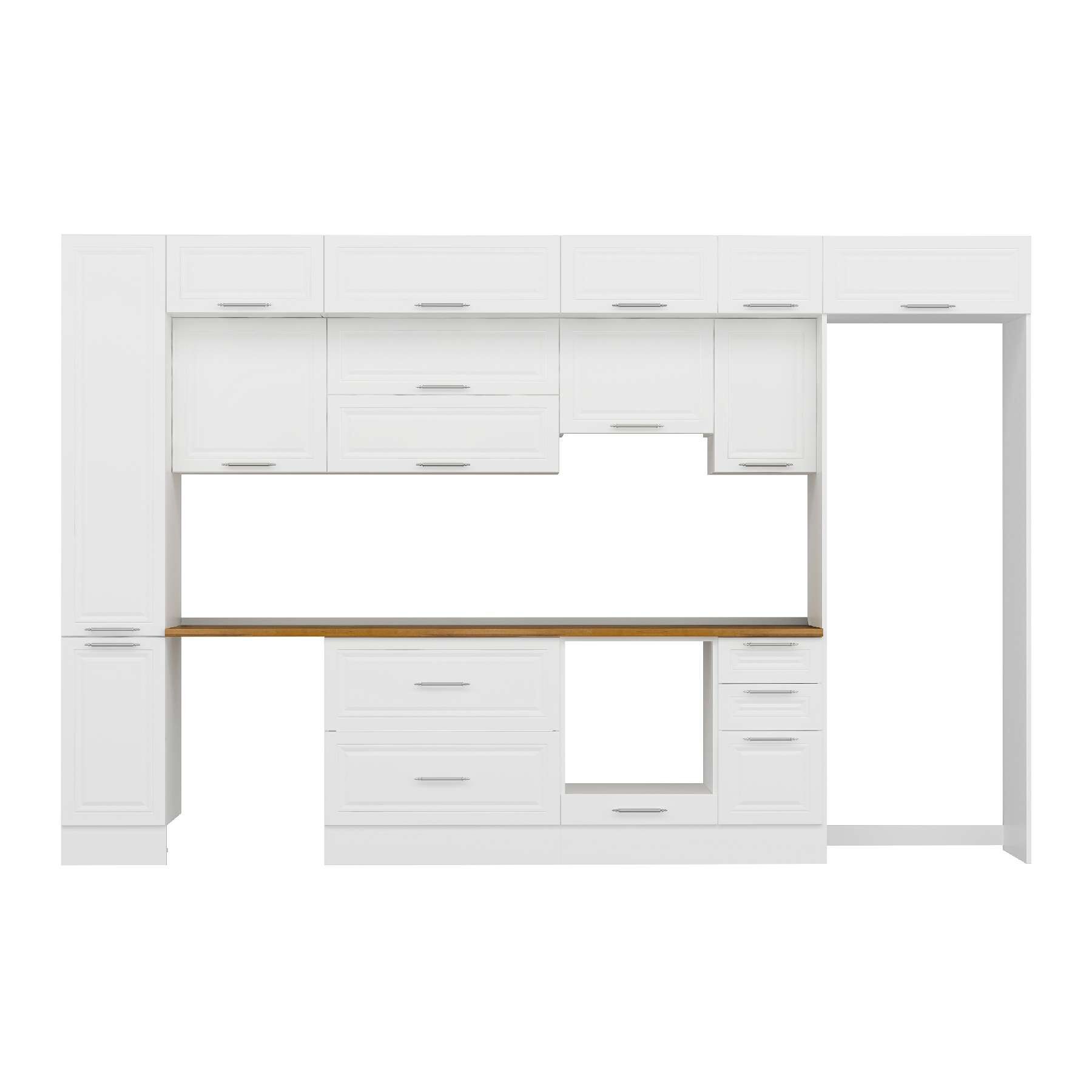Alvinka 370X240 Cm Klasik Mebran Mutfak Dolabı Mbb-E90B40S40-1 Mebran | Beyaz - Mdf