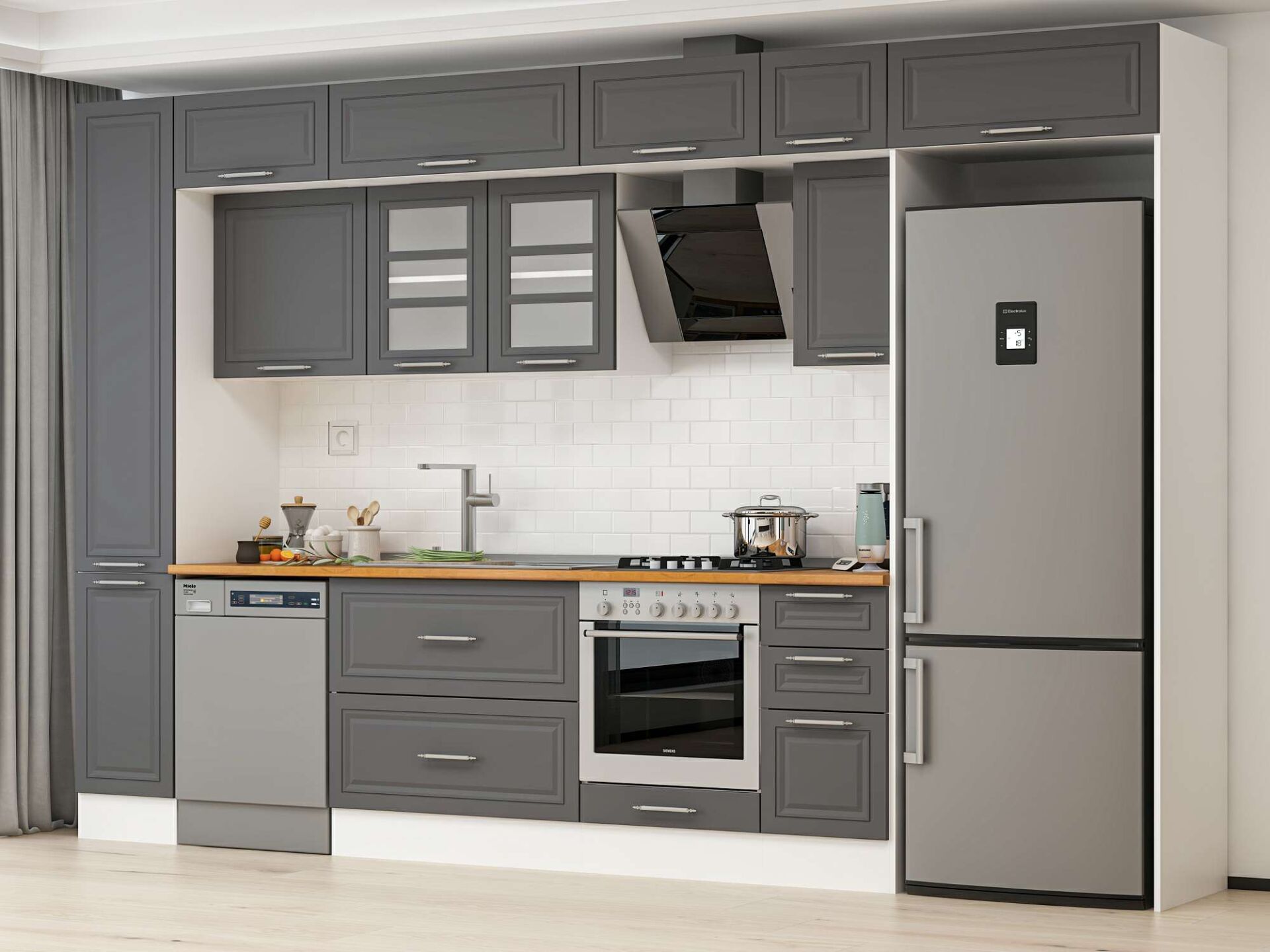 Alvinka 370X240 Cm Klasik Mebran Mutfak Dolabı Mbb-E90B40S40-3