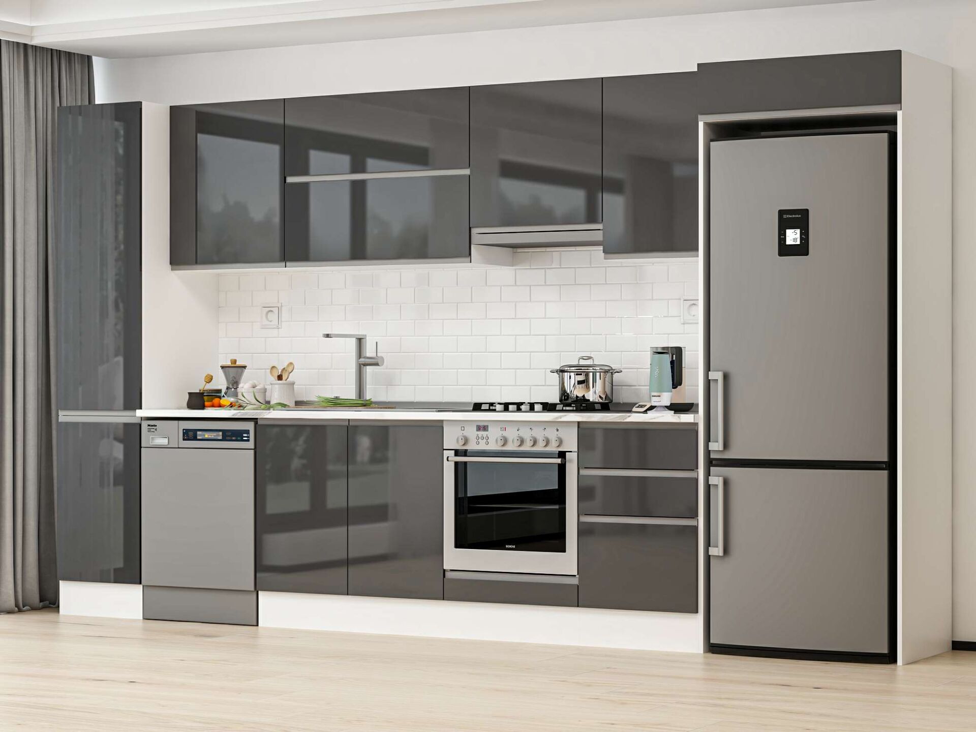 Alvinka 375X222 Cm High Gloss Mutfak Dolabı Mbb-E80B45S50-1