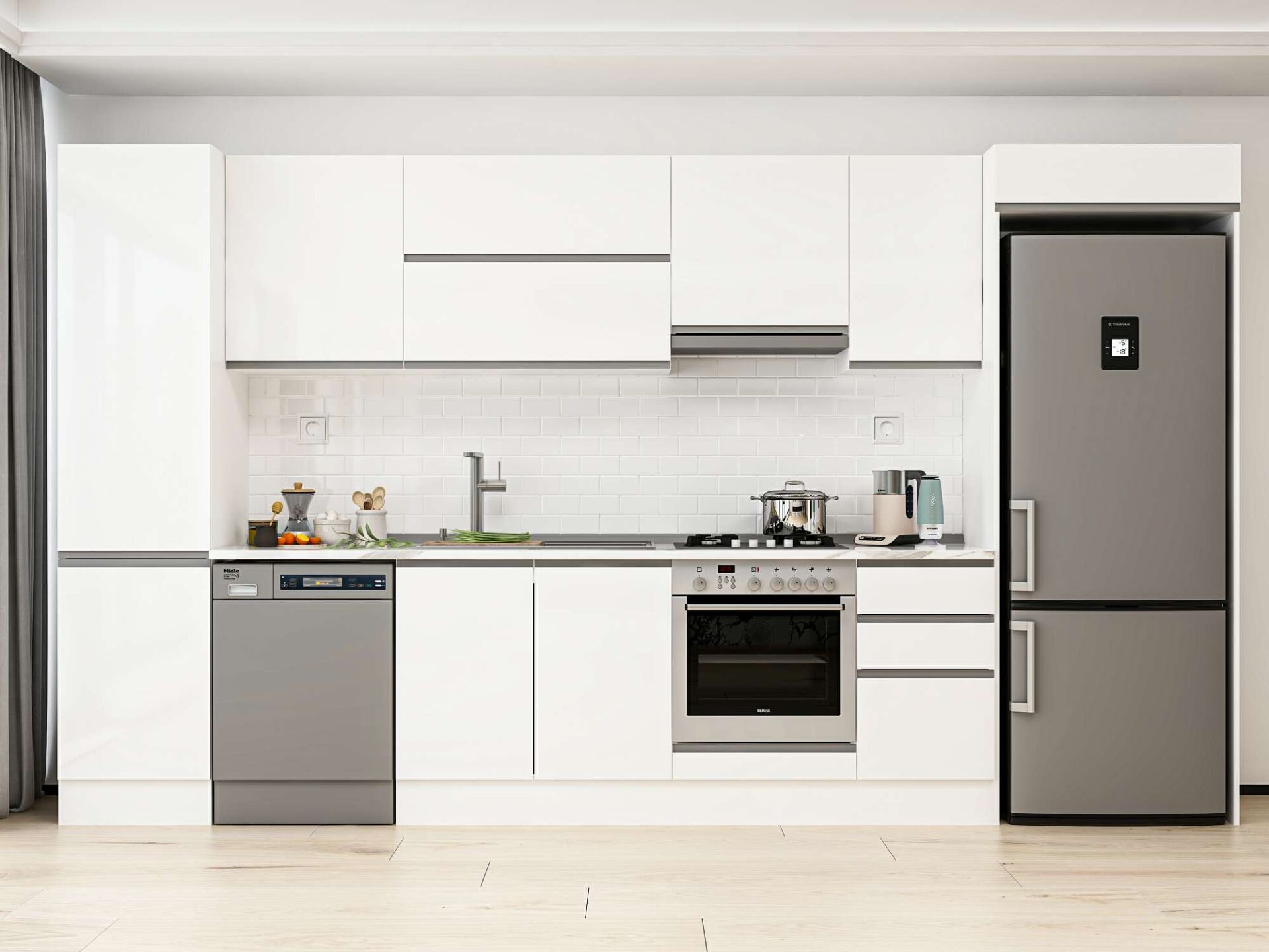 Alvinka 375X222 Cm High Gloss Mutfak Dolabı Mbb-E80B50S45-1 High Gloss | Beyaz - Suntalam