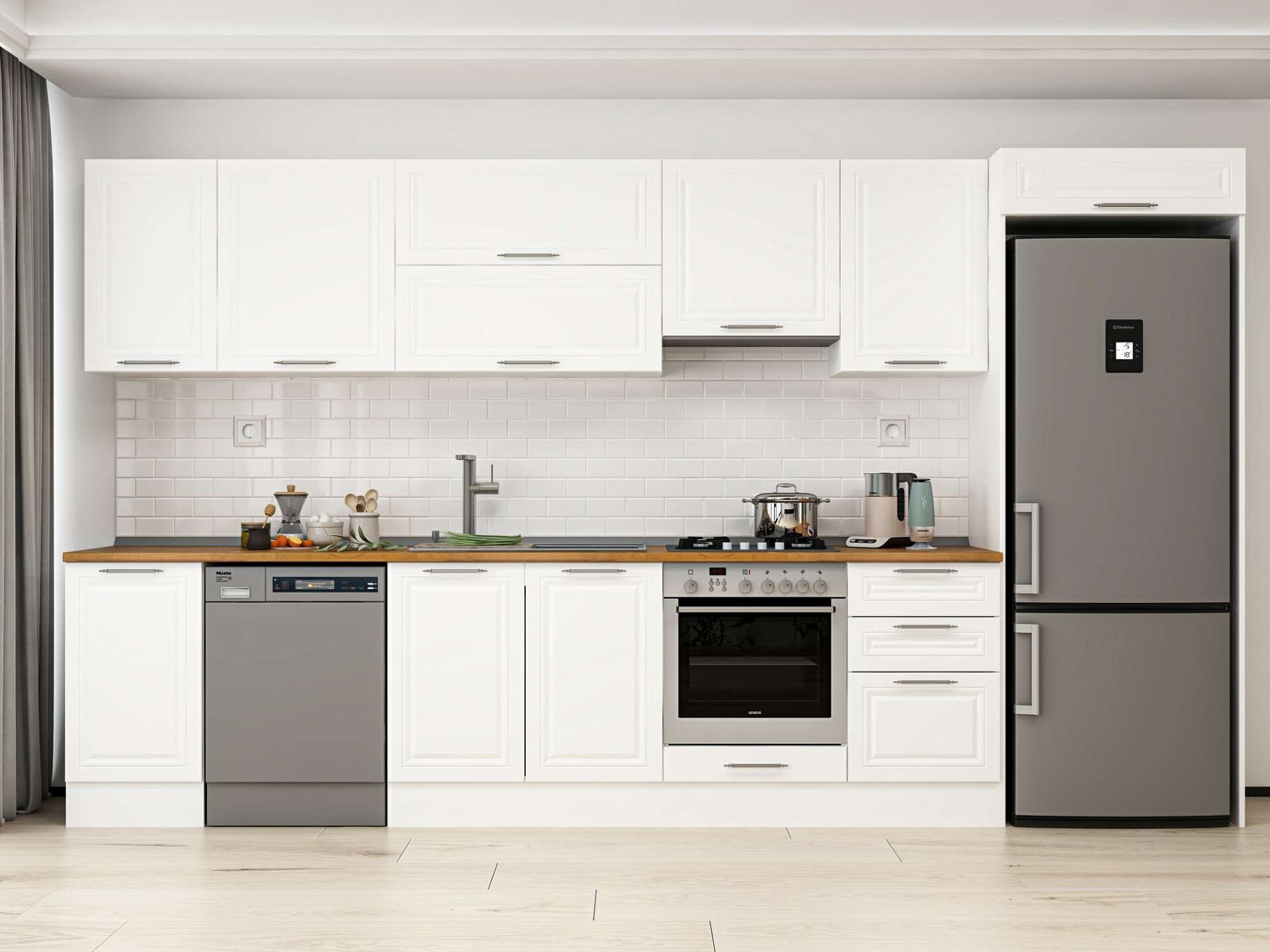 Alvinka 375X222 Cm Klasik Mebran Mutfak Dolabı Mb-E80S45S50-1 Mebran | Beyaz - Mdf