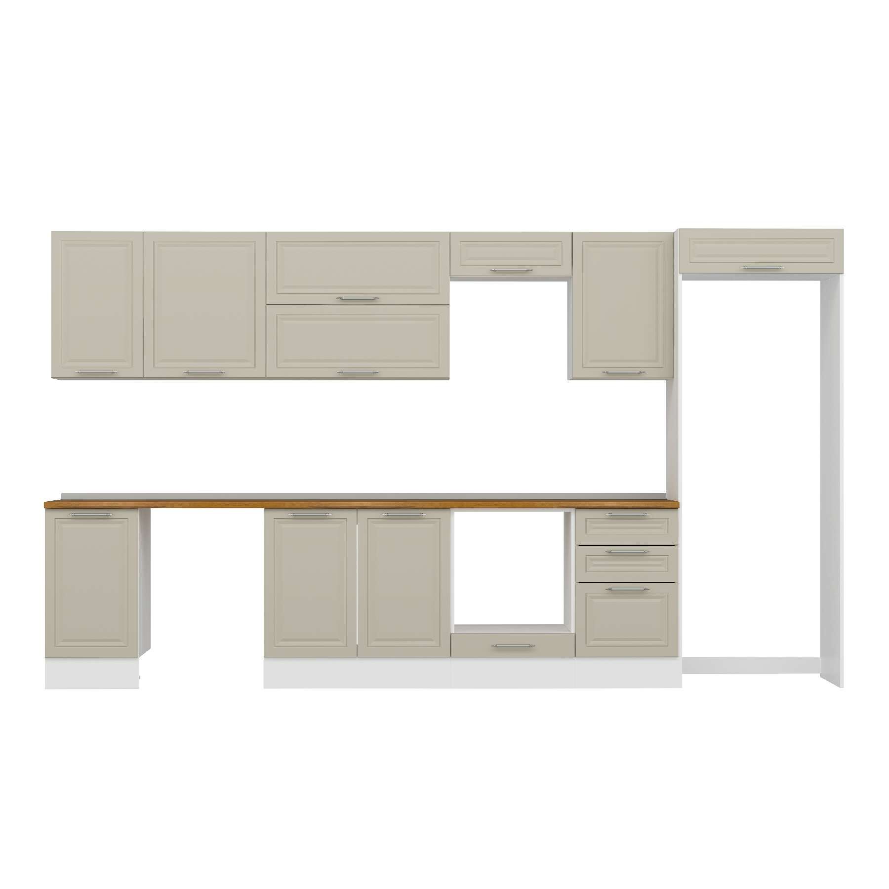 Alvinka 375X222 Cm Klasik Mebran Mutfak Dolabı Mb-E80S45S50-2 Mebran | Kumtaşı - Mdf