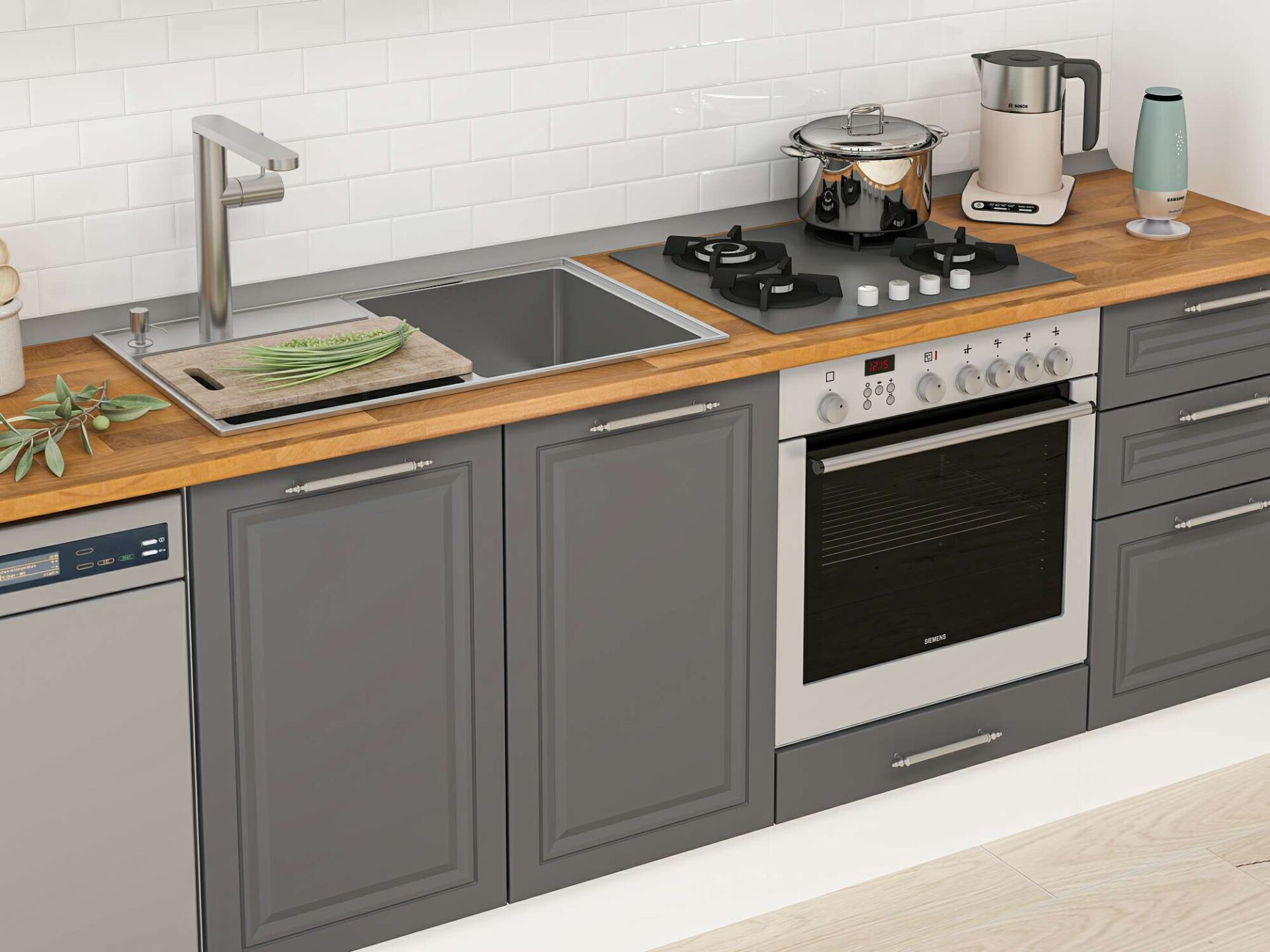 Alvinka 375X222 Cm Klasik Mebran Mutfak Dolabı Mb-E80S45S50-3 Mebran | Antrasit - Mdf