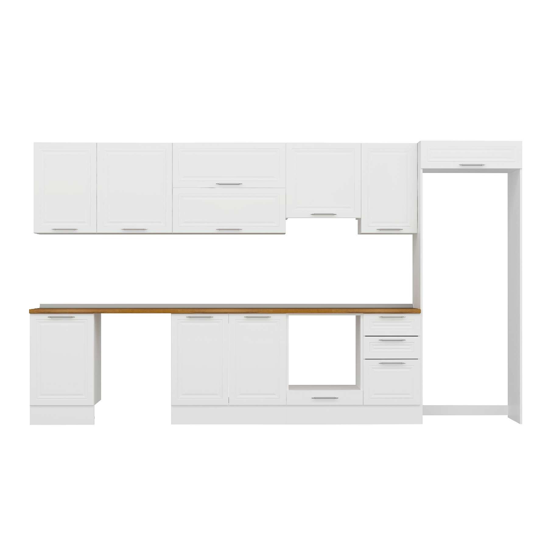 Alvinka 375X222 Cm Klasik Mebran Mutfak Dolabı Mb-E80S50S45-1 Mebran | Beyaz - Suntalam