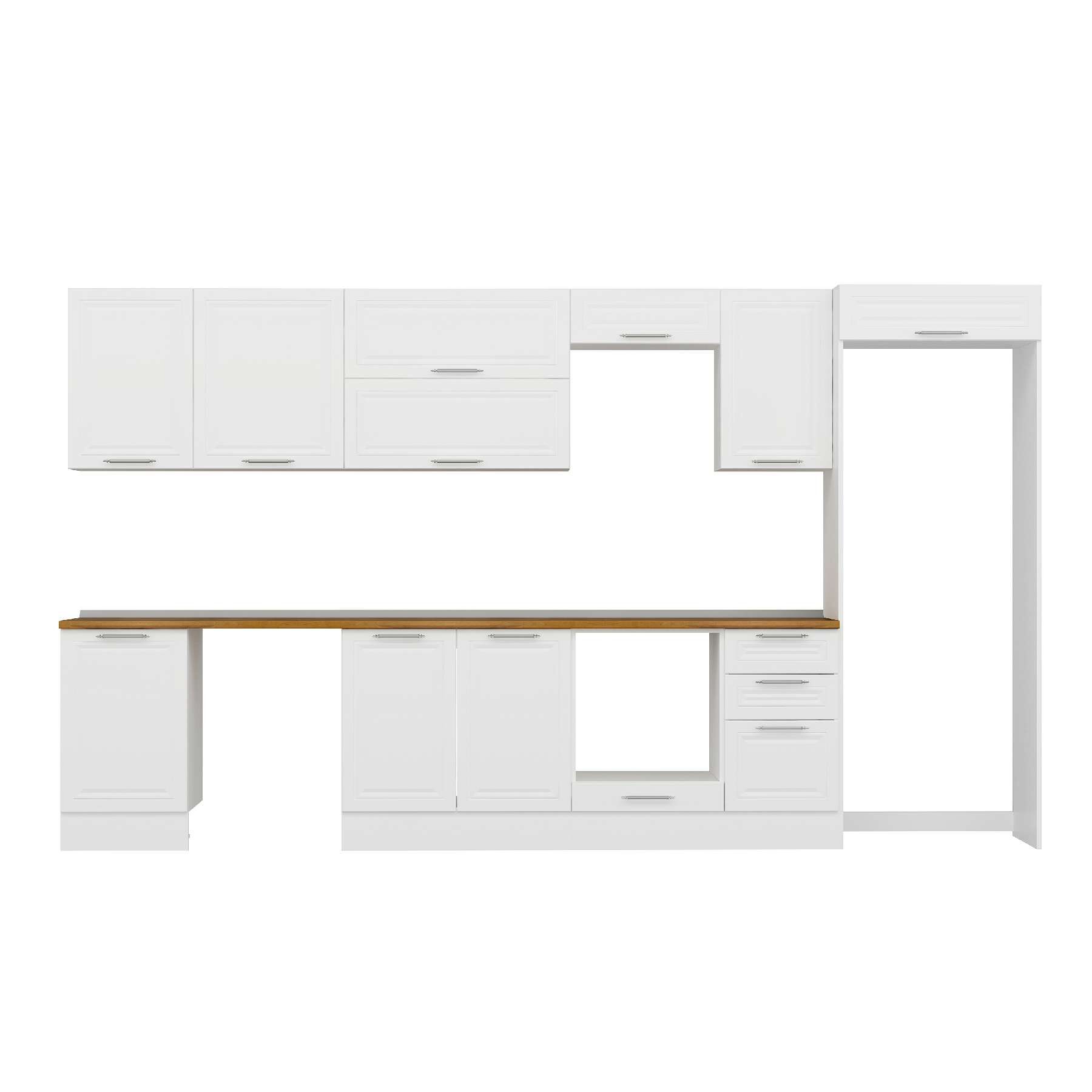 Alvinka 375X222 Cm Klasik Mebran Mutfak Dolabı Mb-E80S50S45-2 Mebran | Beyaz - Mdf