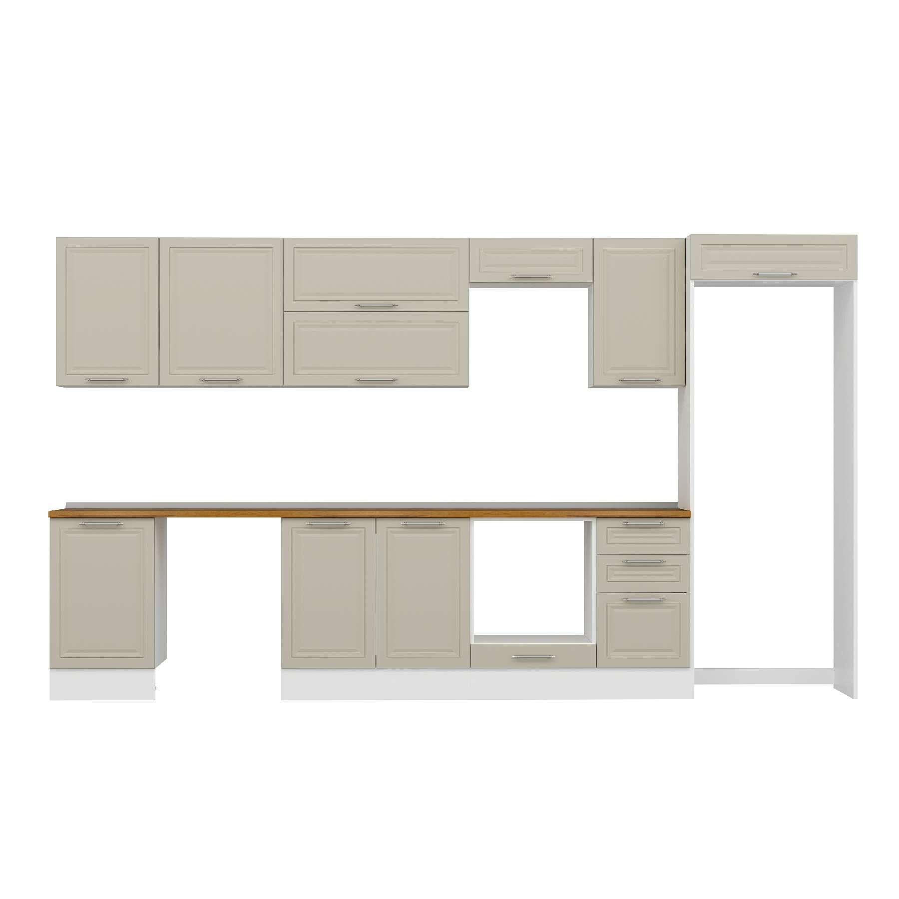 Alvinka 375X222 Cm Klasik Mebran Mutfak Dolabı Mb-E80S50S45-2 Mebran | Kumtaşı - Suntalam