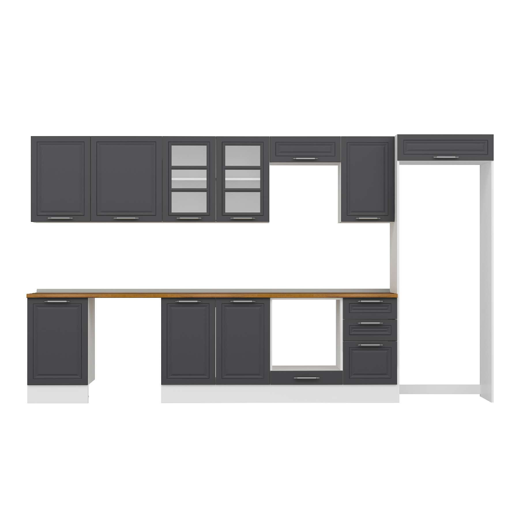Alvinka 375X222 Cm Klasik Mebran Mutfak Dolabı Mb-E80S50S45-3 Mebran | Antrasit - Mdf