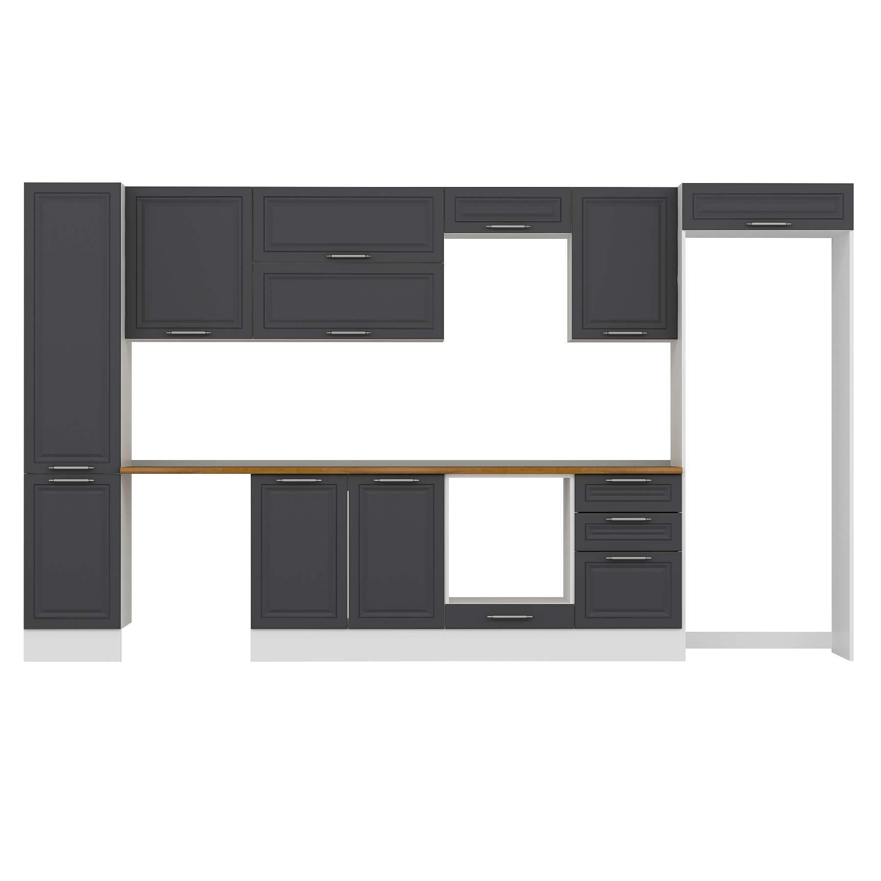 Alvinka 375X222 Cm Klasik Mebran Mutfak Dolabı Mbb-E80B45S50-2 Mebran | Antrasit - Suntalam