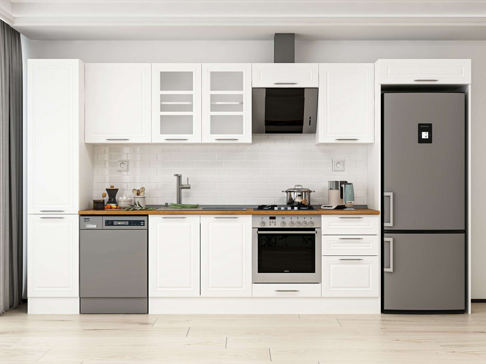 Alvinka 375X222 Cm Klasik Mebran Mutfak Dolabı Mbb-E80B45S50-3 Mebran | Beyaz - Suntalam