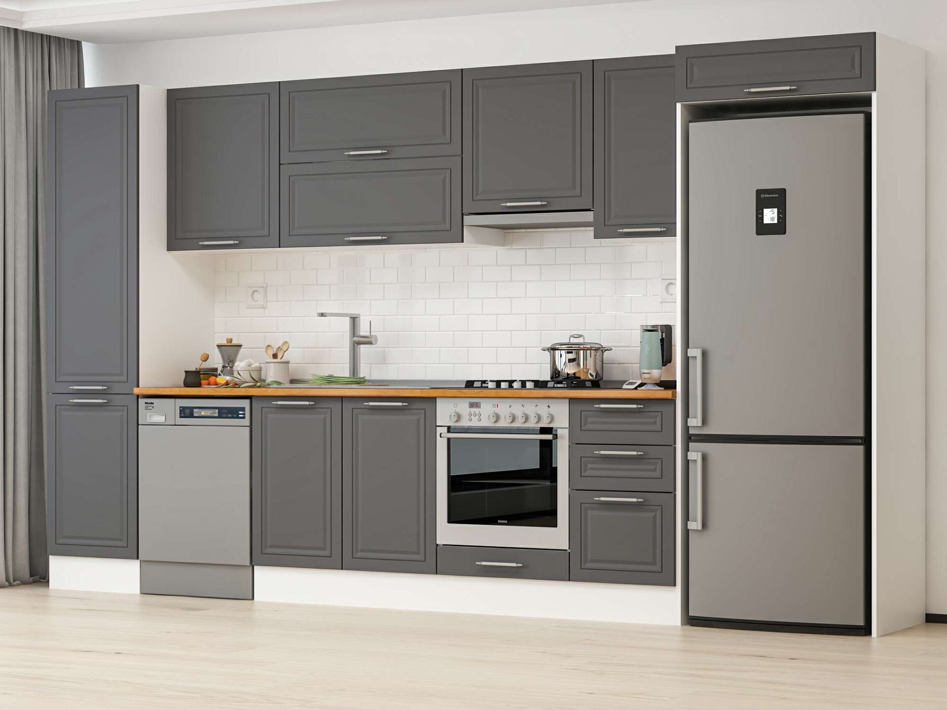 Alvinka 375X222 Cm Klasik Mebran Mutfak Dolabı Mbb-E80B50S45-1