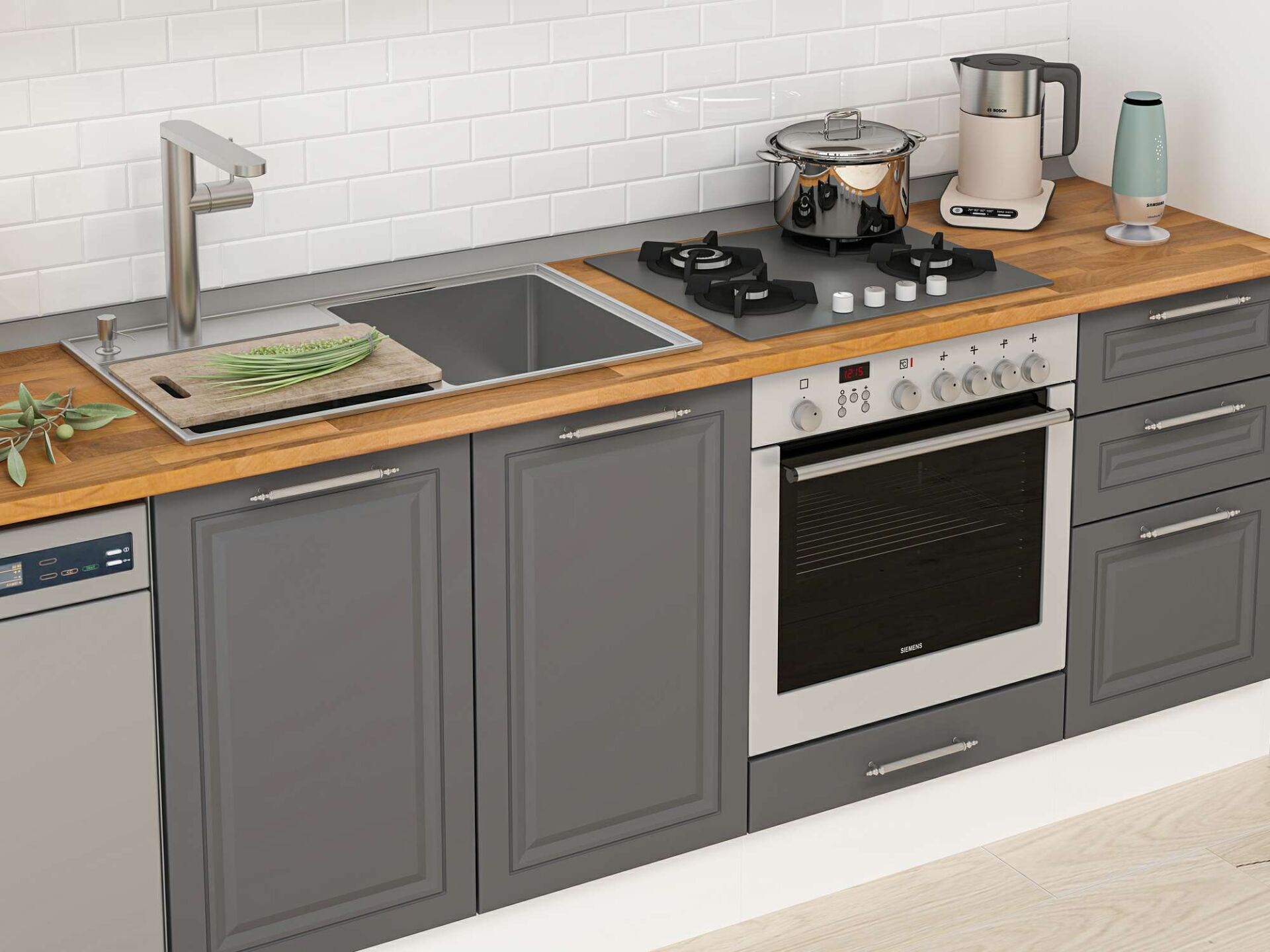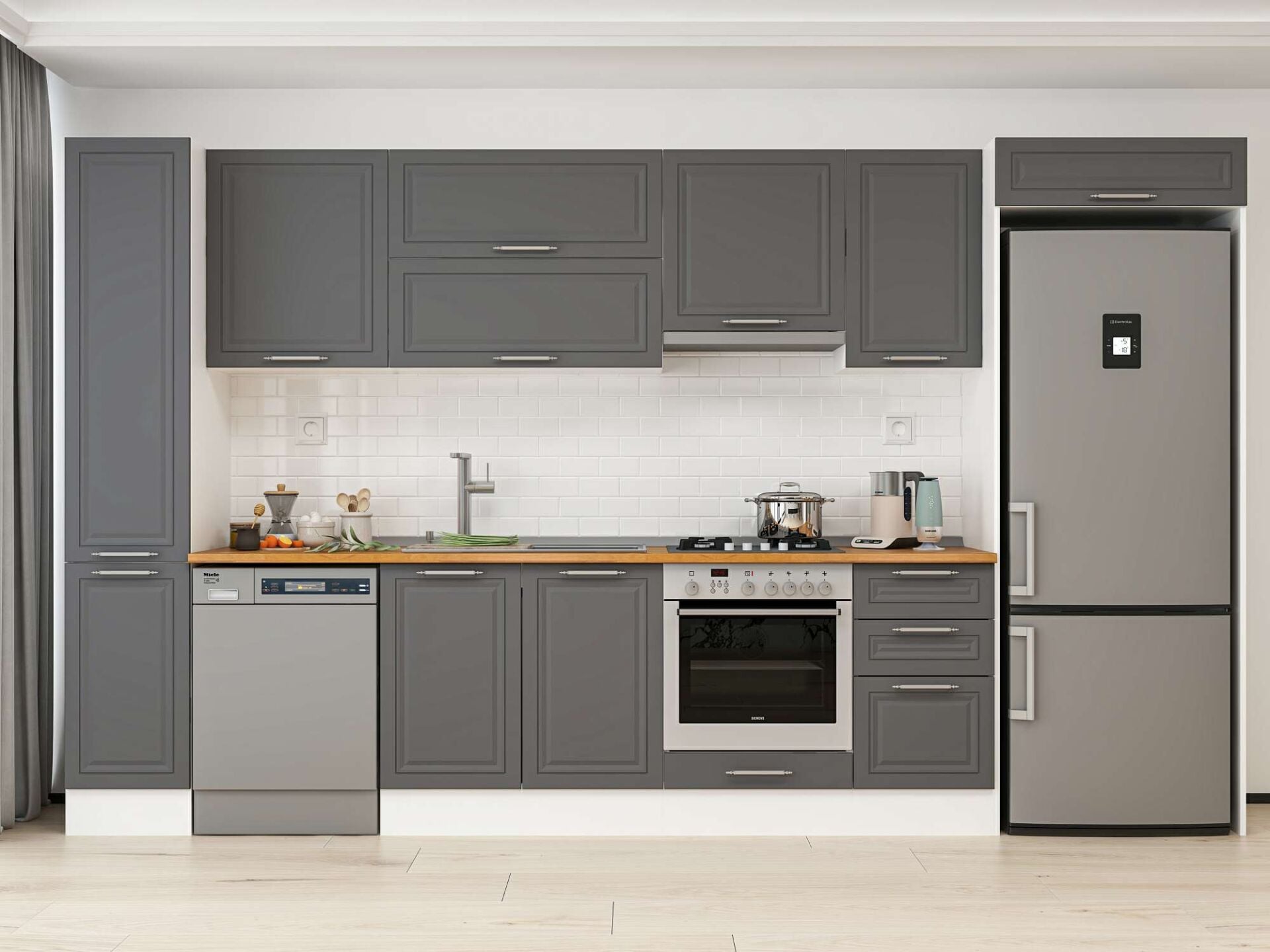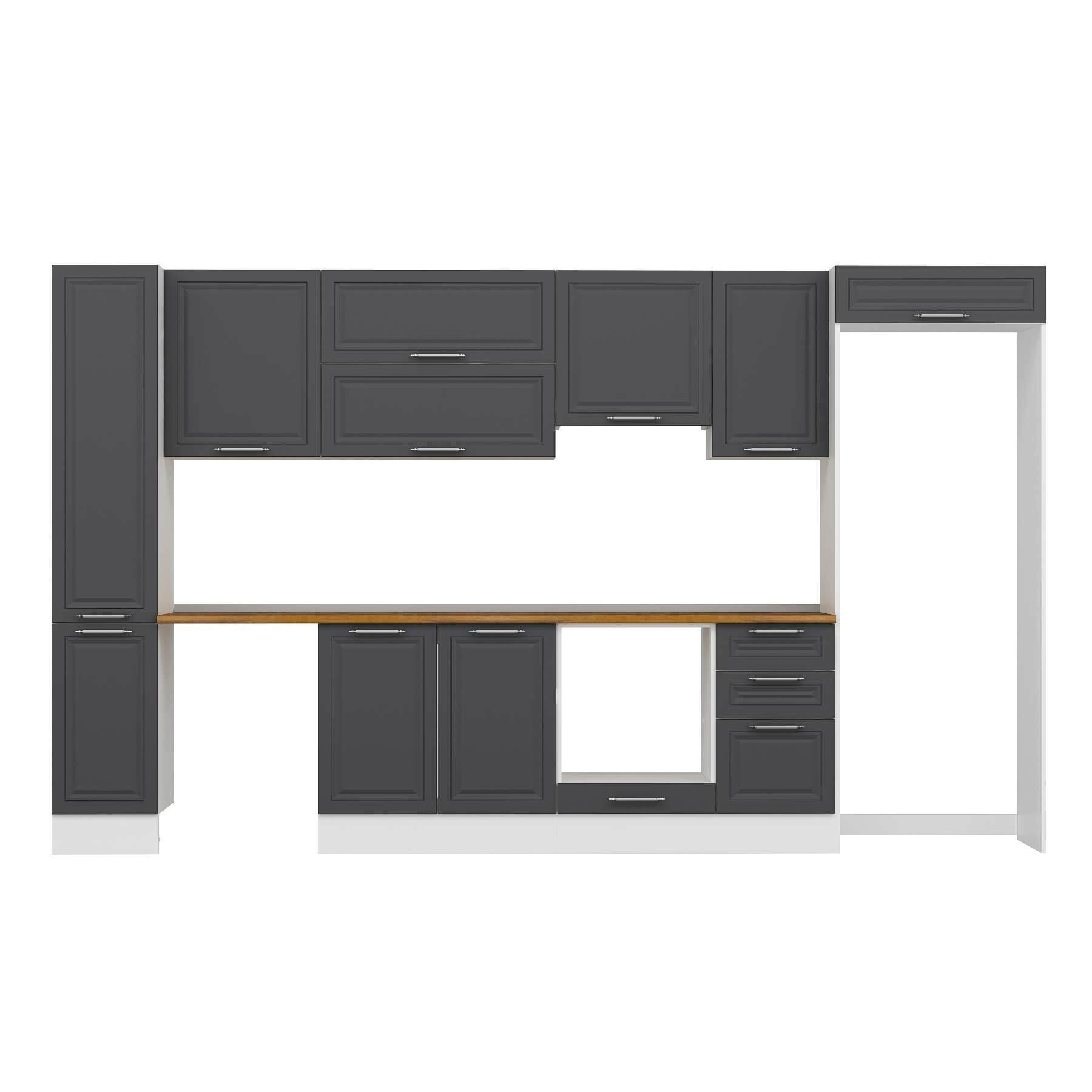 Alvinka 375X222 Cm Klasik Mebran Mutfak Dolabı Mbb-E90B40S45-1 Mebran | Antrasit - Suntalam
