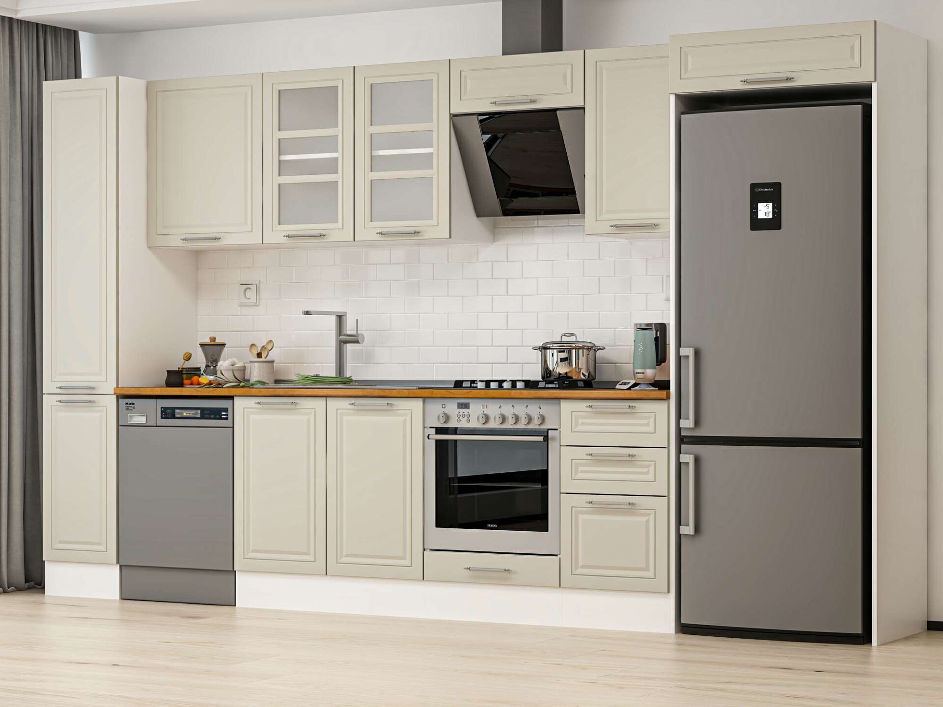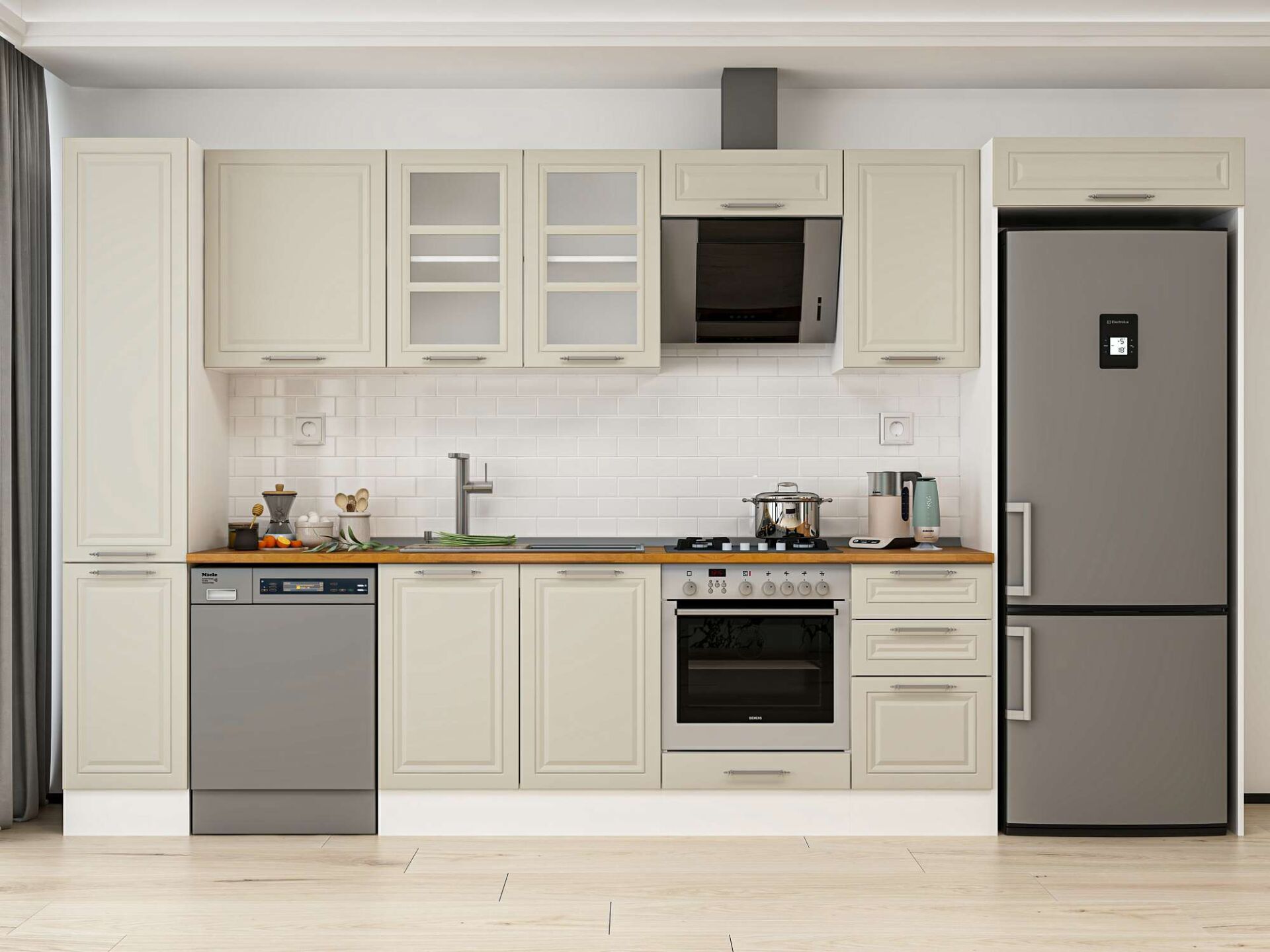Alvinka 375X222 Cm Klasik Mebran Mutfak Dolabı Mbb-E90B40S45-3 Mebran | Kumtaşı - Mdf
