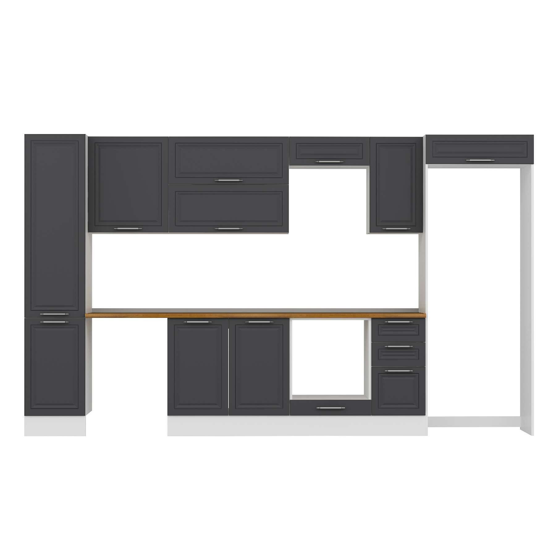 Alvinka 375X222 Cm Klasik Mebran Mutfak Dolabı Mbb-E90B45S40-2 Mebran | Antrasit - Mdf