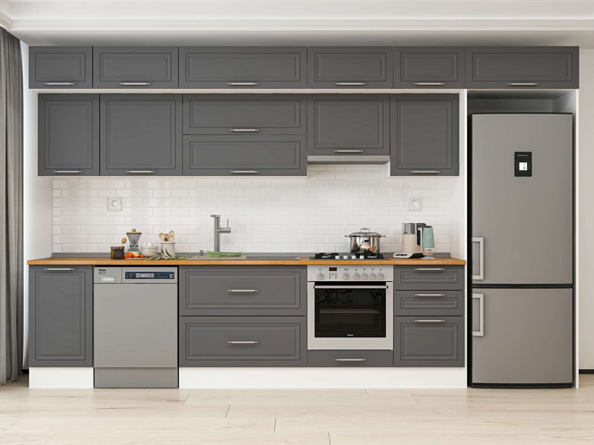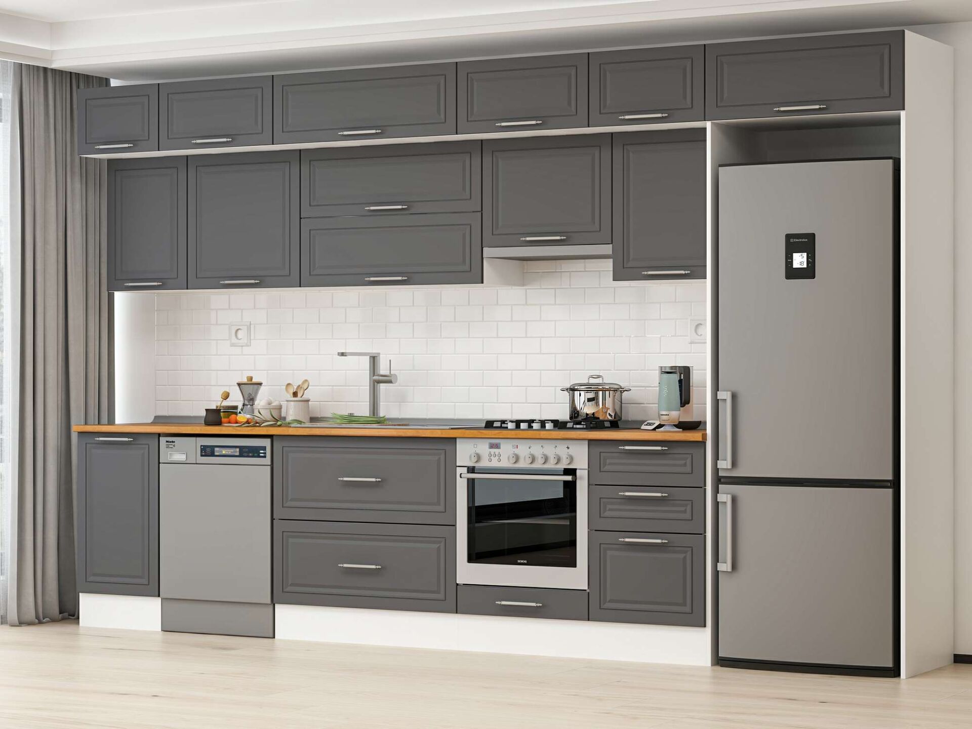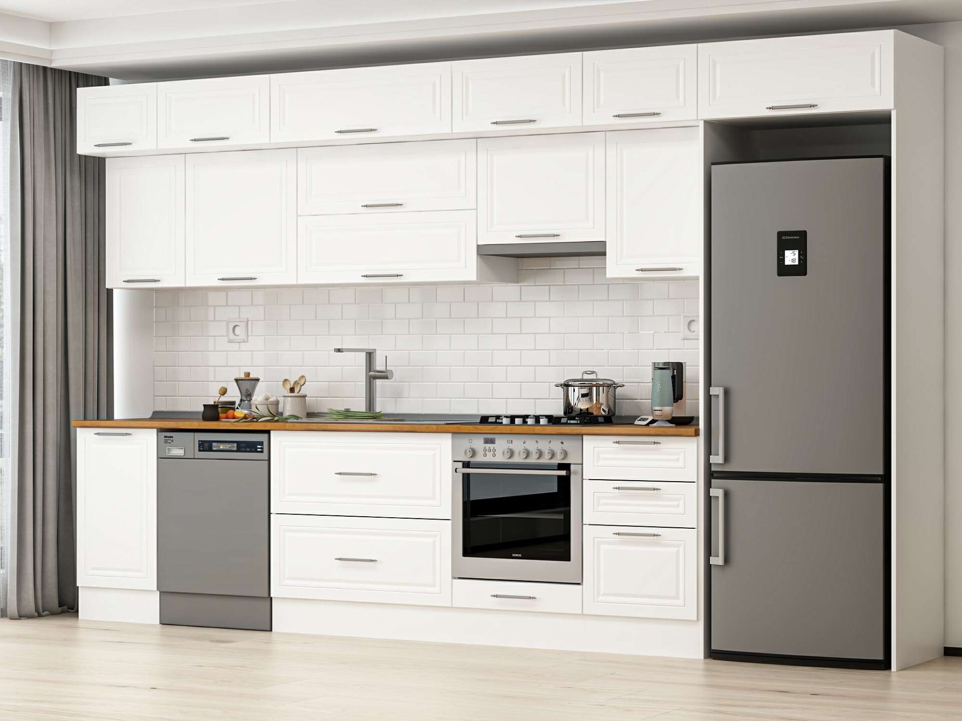 Alvinka 375X240 Cm Klasik Mebran Mutfak Dolabı Mb-E80S45S50-1