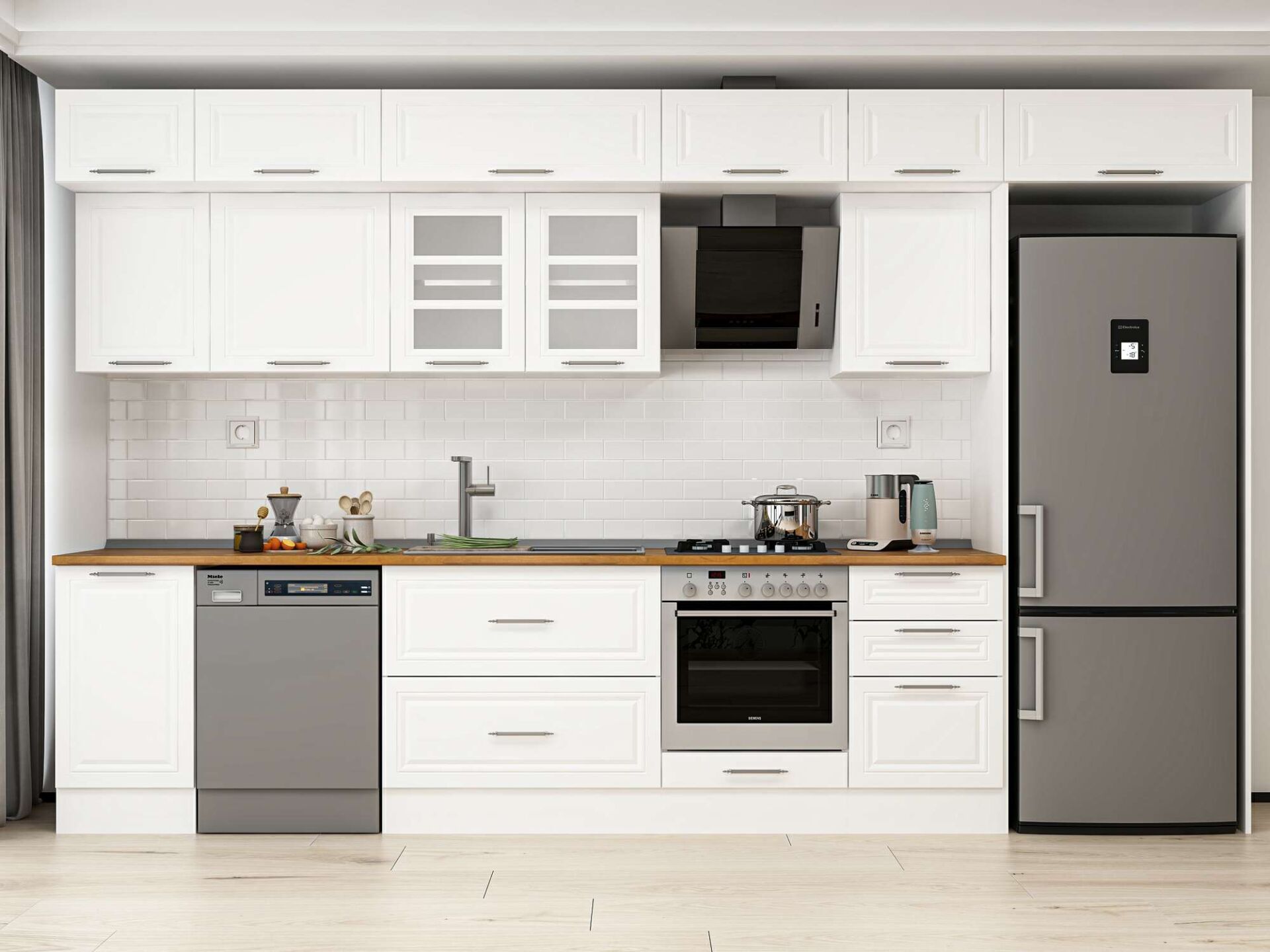 Alvinka 375X240 Cm Klasik Mebran Mutfak Dolabı Mb-E80S45S50-3 Mebran | Beyaz - Mdf