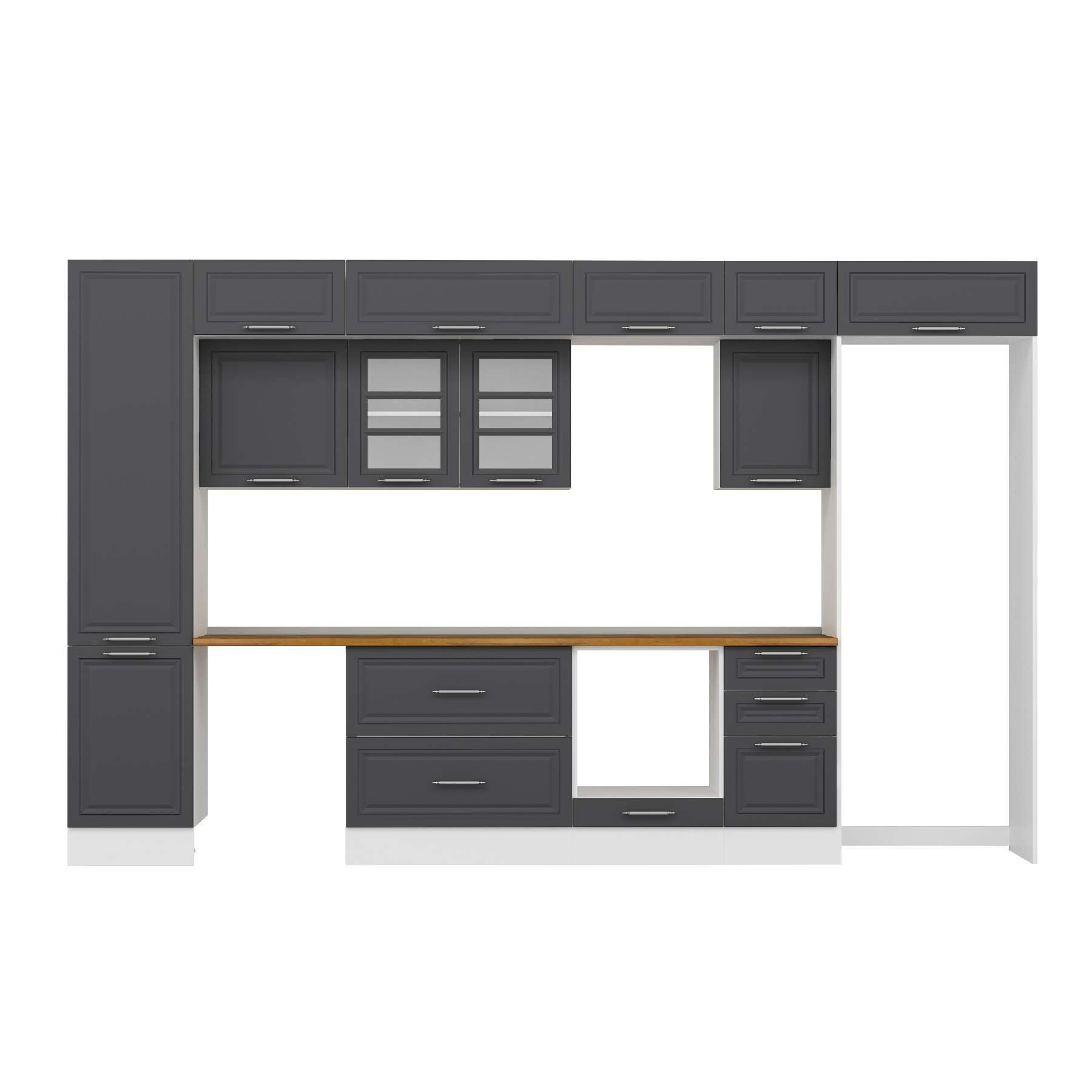 Alvinka 375X240 Cm Klasik Mebran Mutfak Dolabı Mbb-E80B50S45-3 Mebran | Antrasit - Mdf
