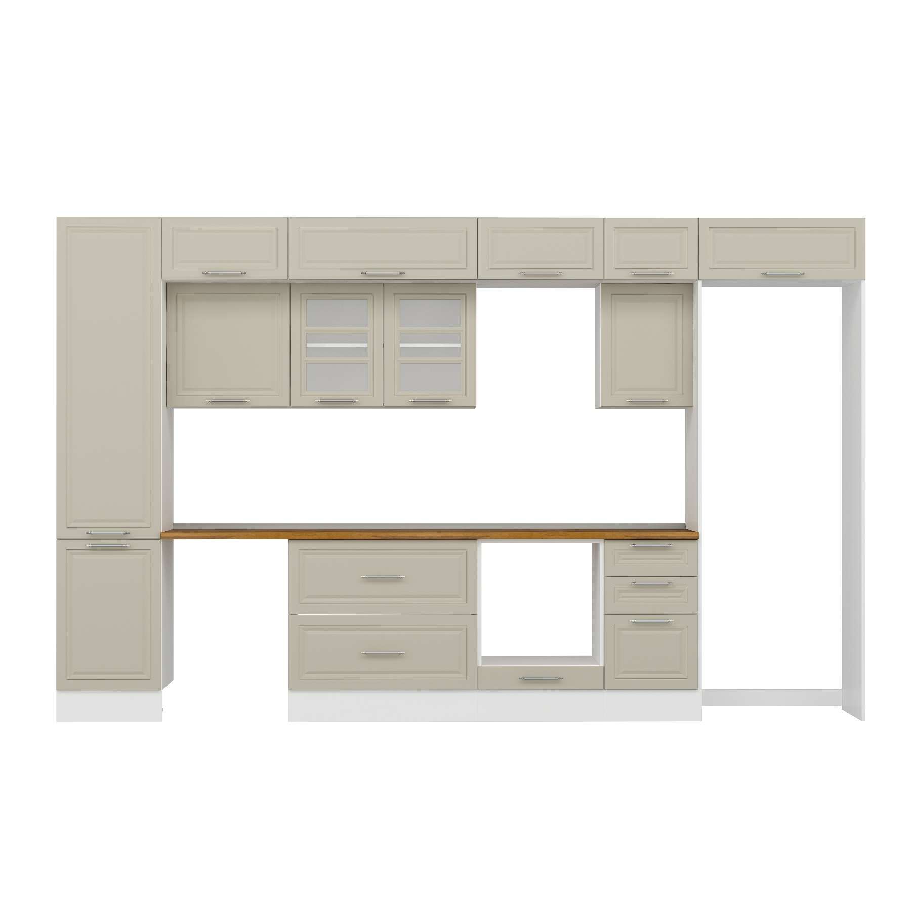 Alvinka 375X240 Cm Klasik Mebran Mutfak Dolabı Mbb-E80B50S45-3 Mebran | Kumtaşı - Suntalam