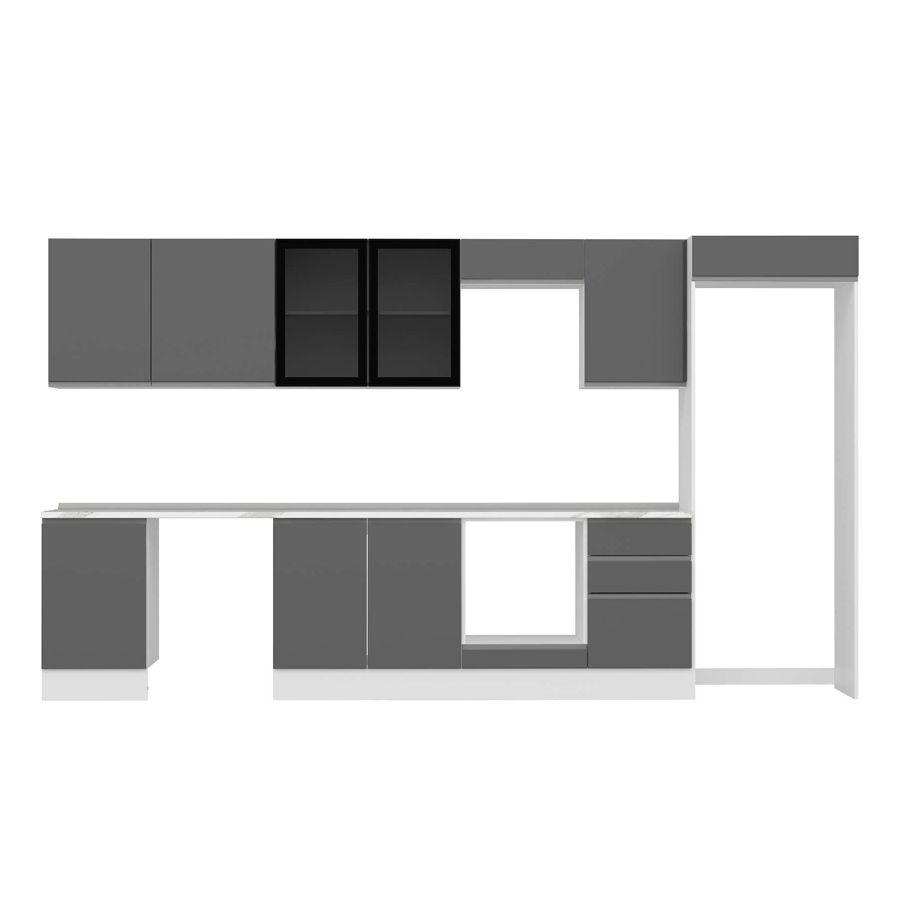 Alvinka 380X222 Cm High Gloss Mutfak Dolabı Mb-E80S50S50-3 High Gloss | Antrasit - Mdf