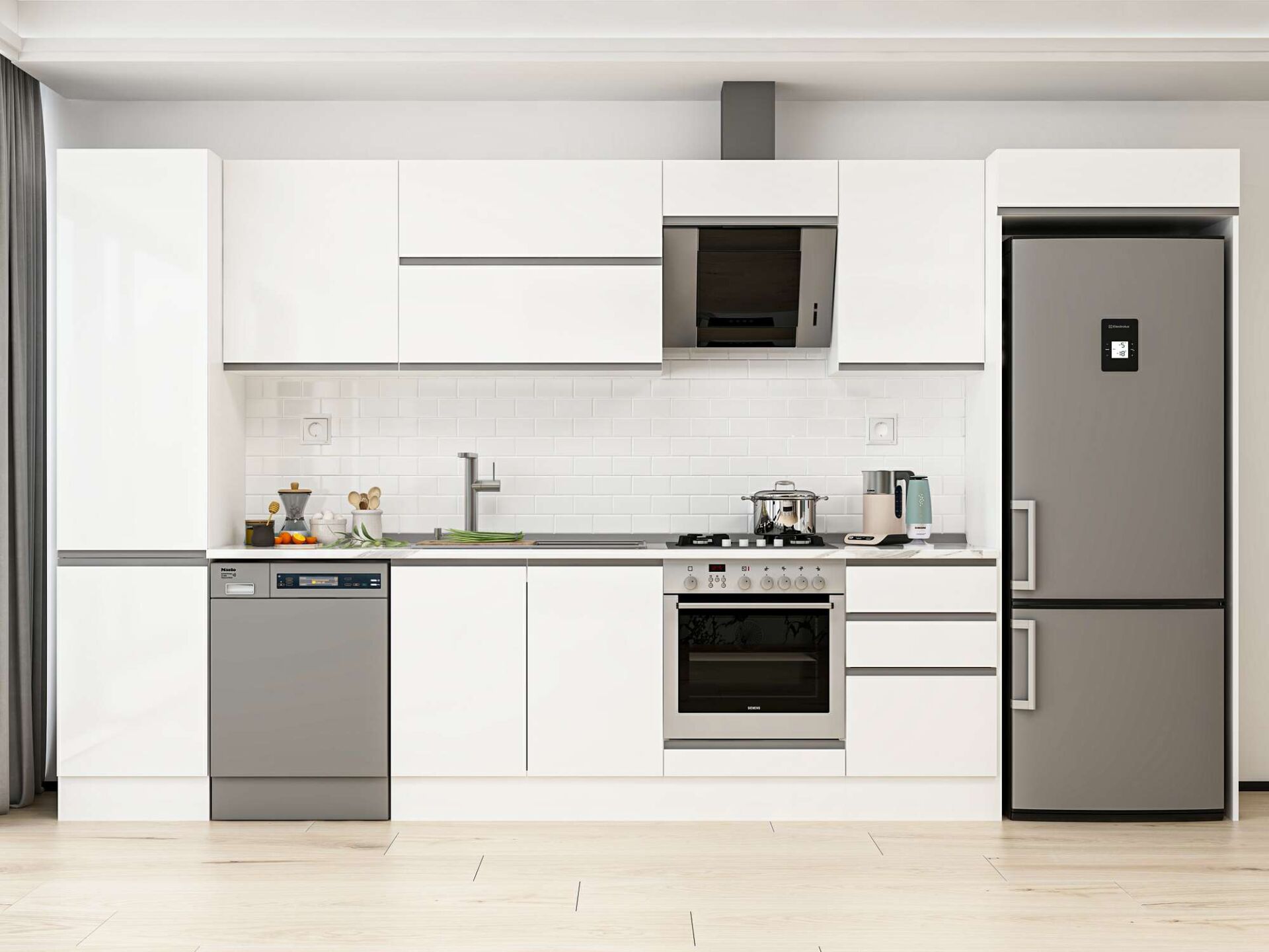 Alvinka 380X222 Cm High Gloss Mutfak Dolabı Mbb-E80B50S50-2 High Gloss | Beyaz - Mdf