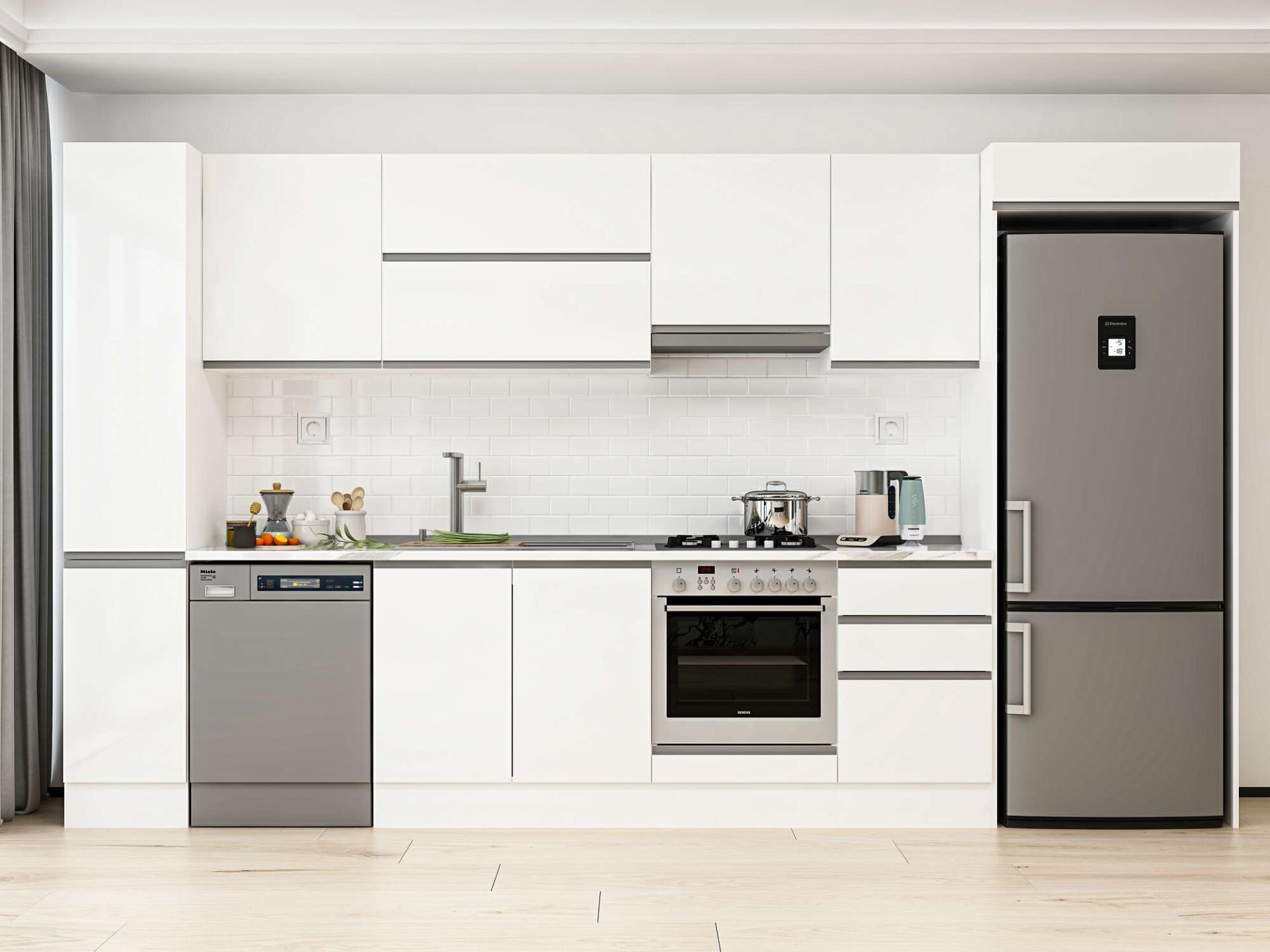 Alvinka 380X222 Cm High Gloss Mutfak Dolabı Mbb-E90B40S50-1 High Gloss | Beyaz - Mdf