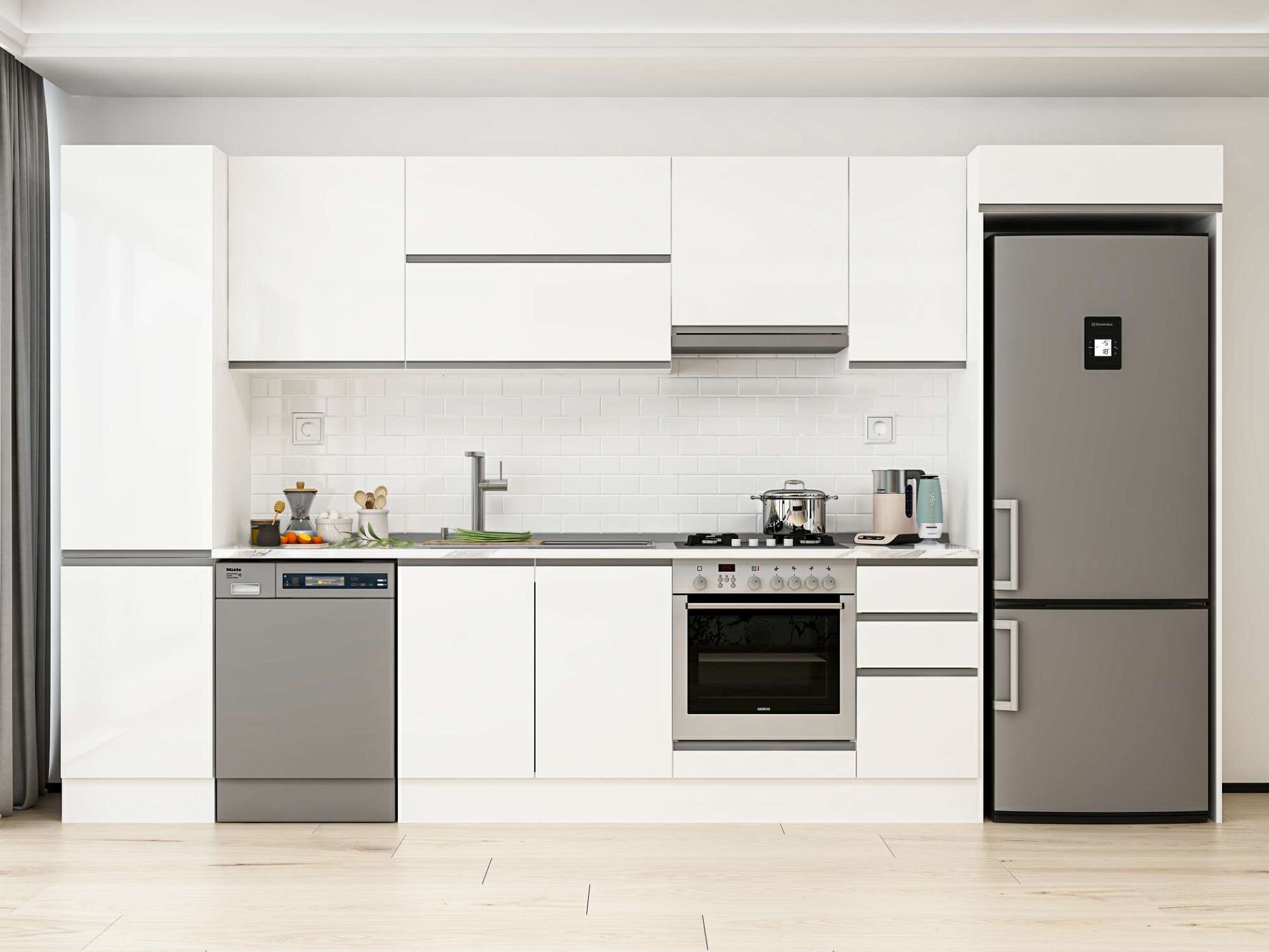 Alvinka 380X222 Cm High Gloss Mutfak Dolabı Mbb-E90B50S40-1 High Gloss | Beyaz - Suntalam