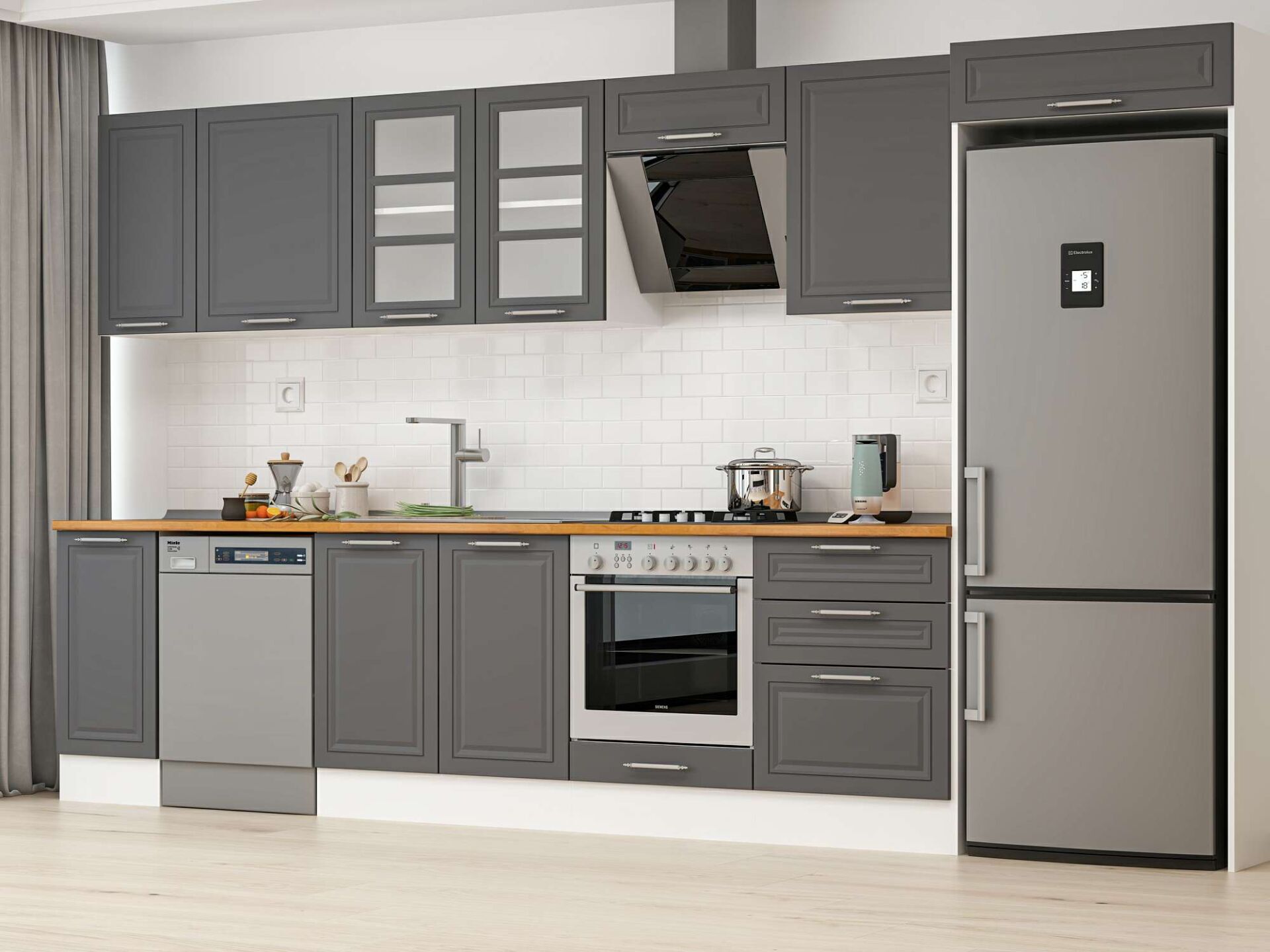 Alvinka 380X222 Cm Klasik Mebran Mutfak Dolabı Mb-E80S40S60-3