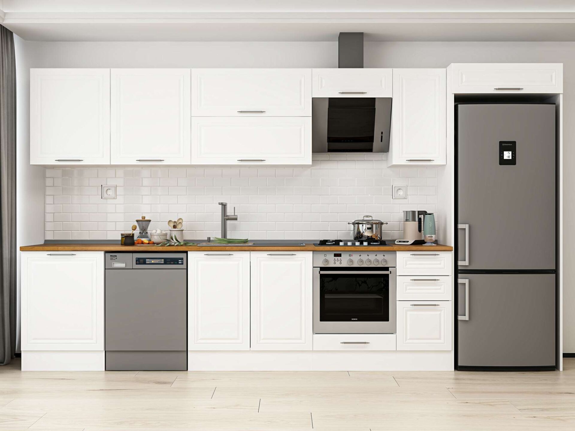 Alvinka 380X222 Cm Klasik Mebran Mutfak Dolabı Mb-E80S60S40-2 Mebran | Beyaz - Suntalam