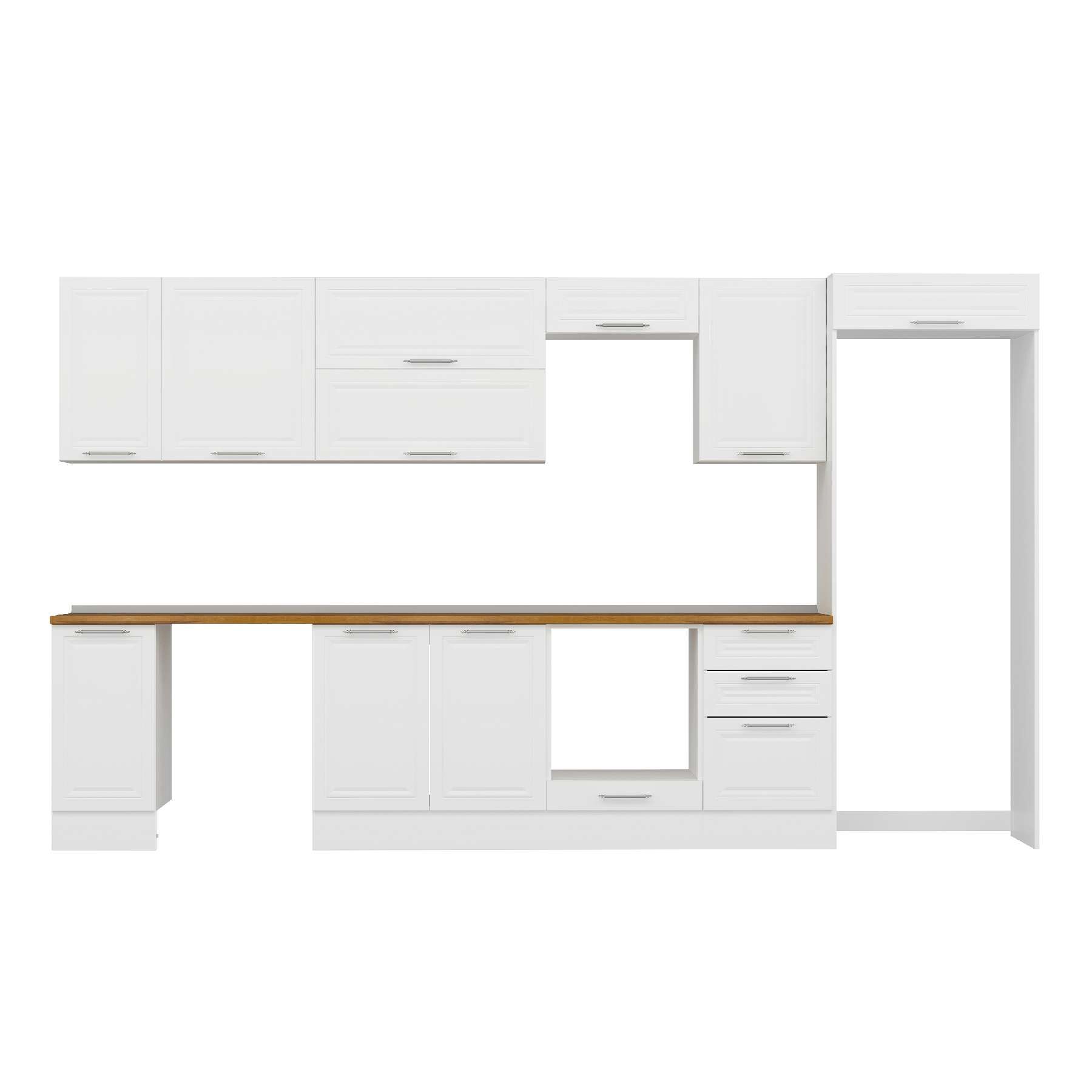 Alvinka 380X222 Cm Klasik Mebran Mutfak Dolabı Mb-E90S40S50-2 Mebran | Beyaz - Mdf