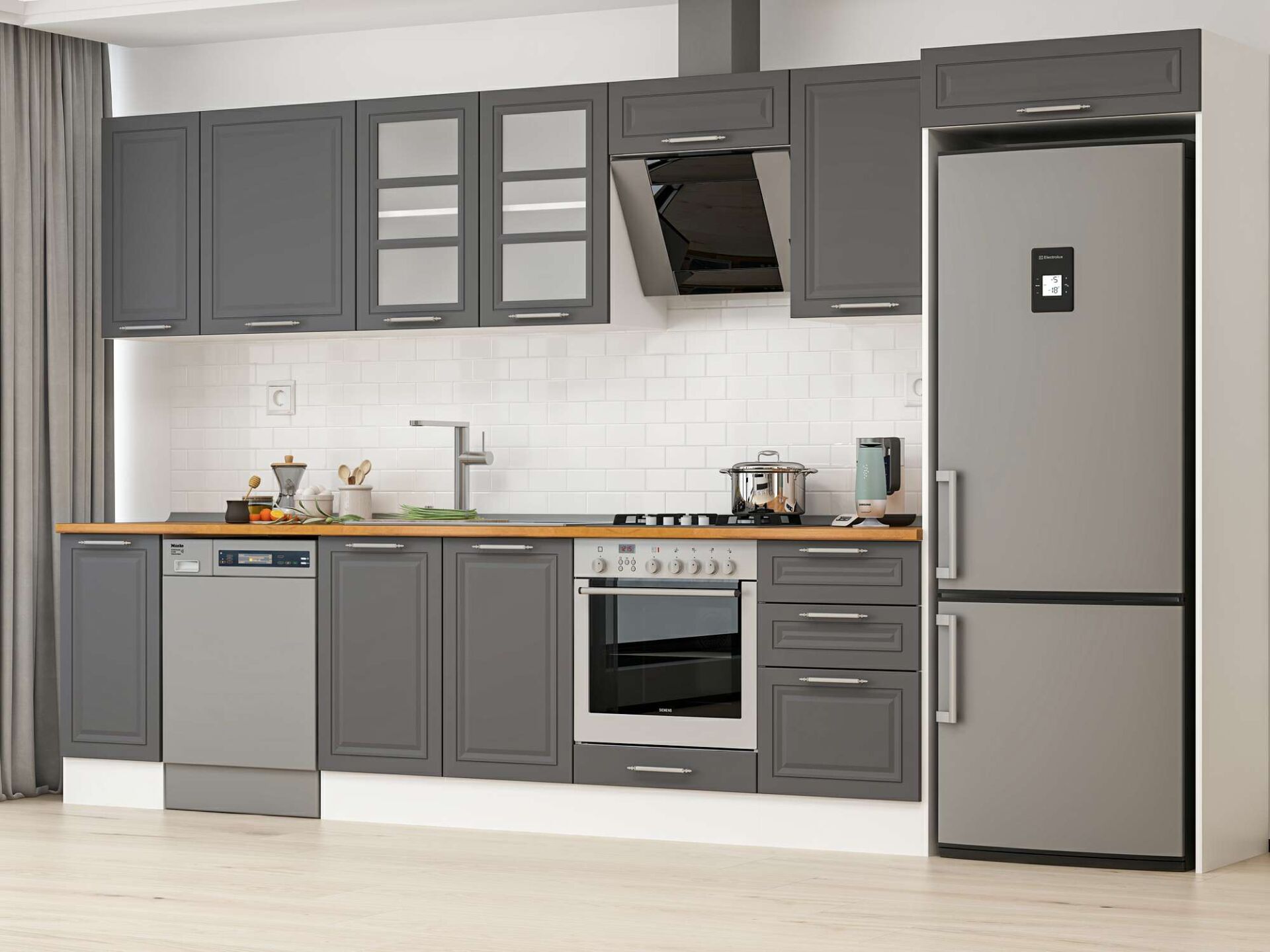 Alvinka 380X222 Cm Klasik Mebran Mutfak Dolabı Mb-E90S40S50-3 Mebran | Antrasit - Suntalam