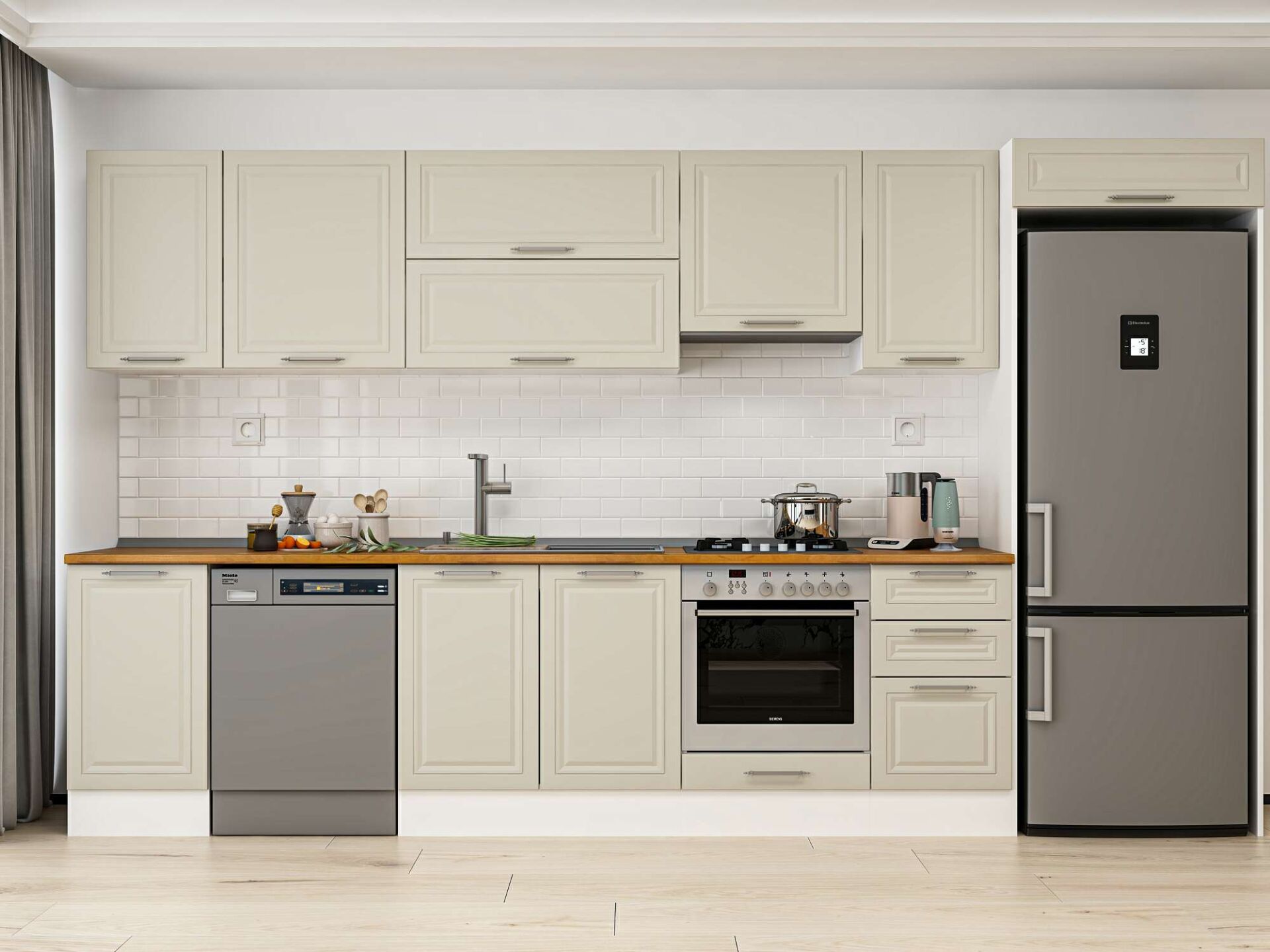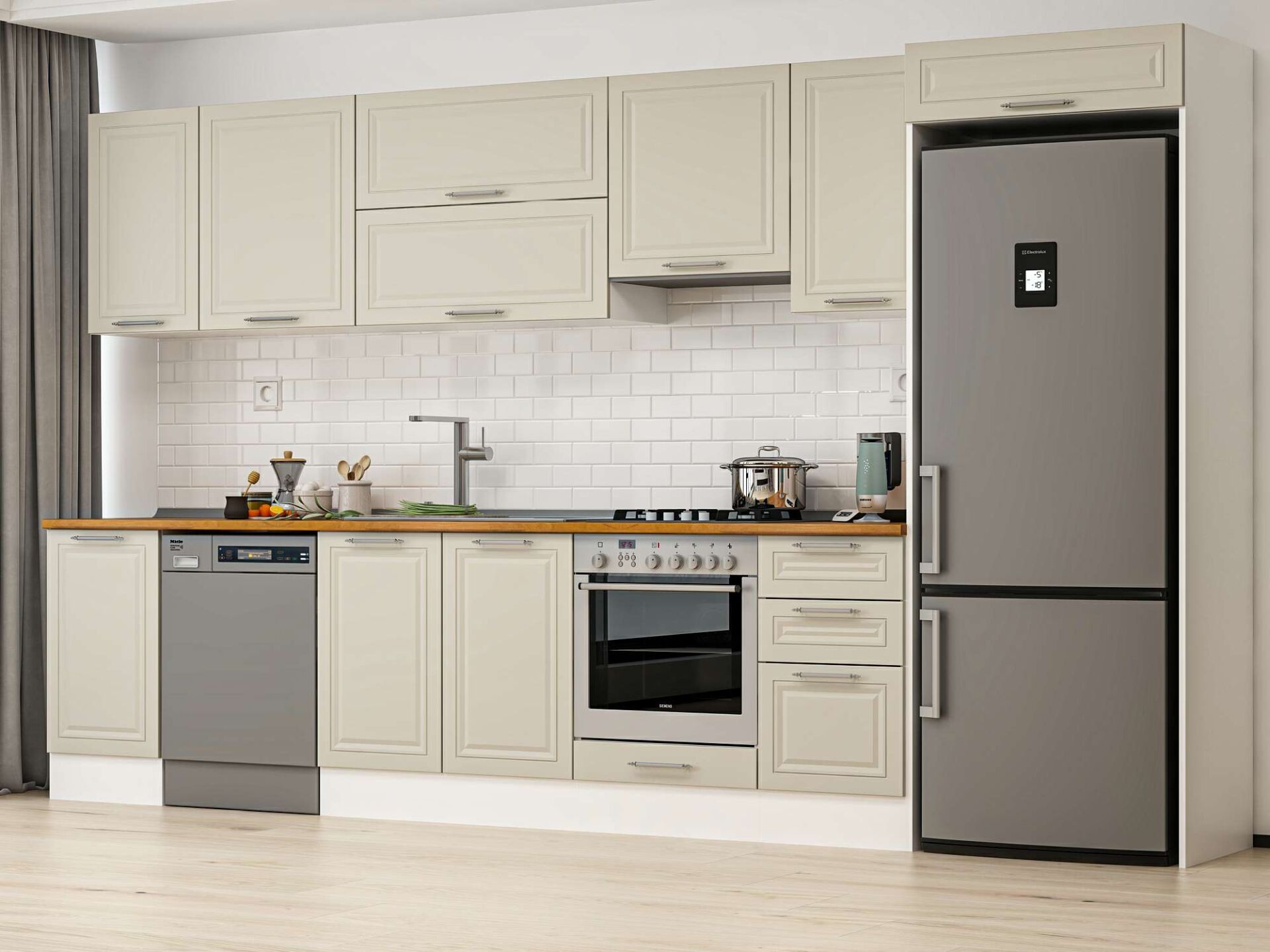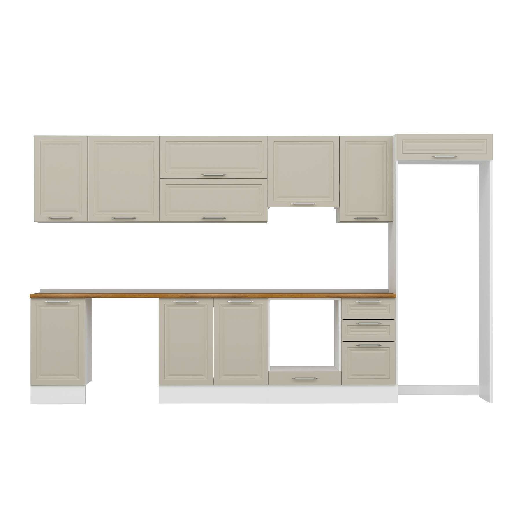 Alvinka 380X222 Cm Klasik Mebran Mutfak Dolabı Mb-E90S45S45-1 Mebran | Kumtaşı - Suntalam