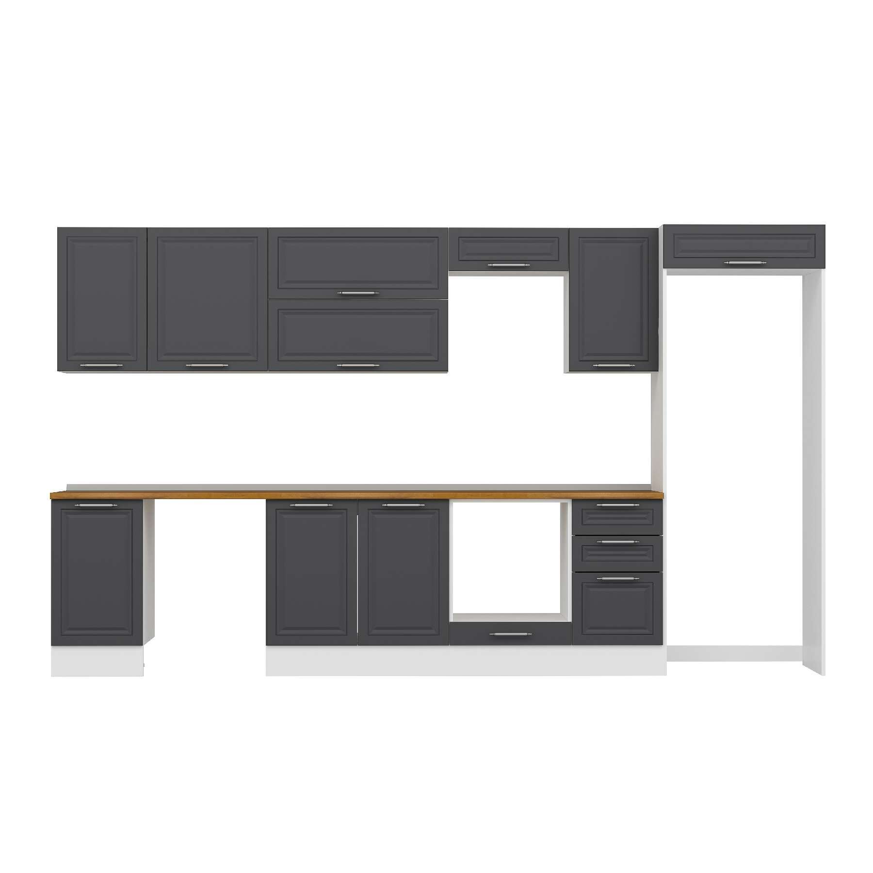 Alvinka 380X222 Cm Klasik Mebran Mutfak Dolabı Mb-E90S45S45-2 Mebran | Antrasit - Mdf