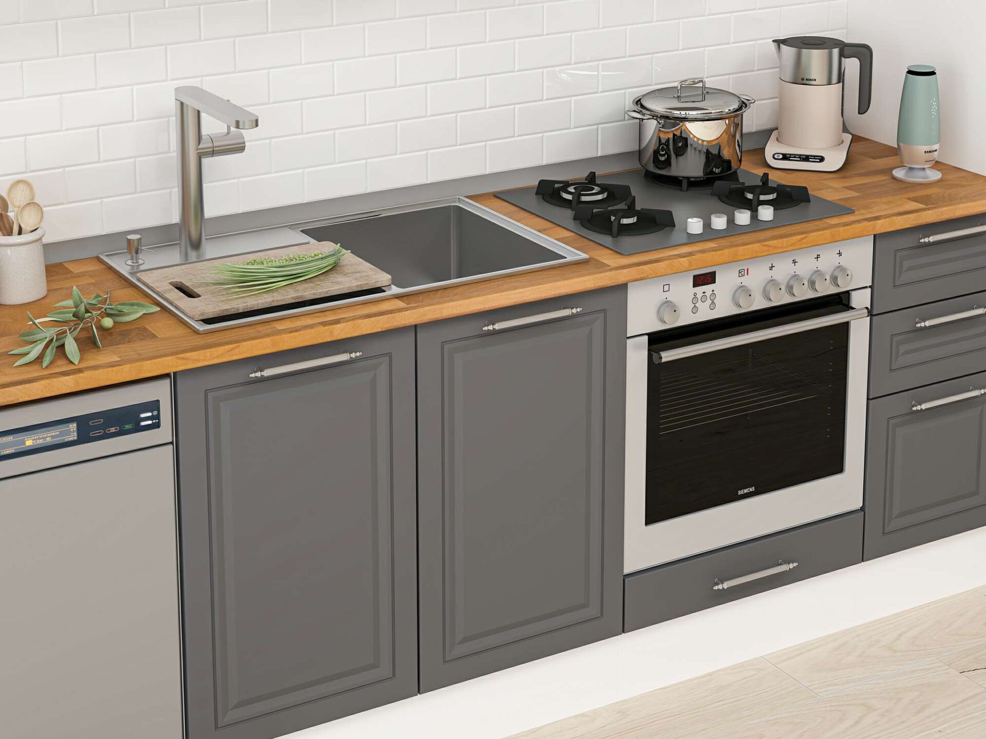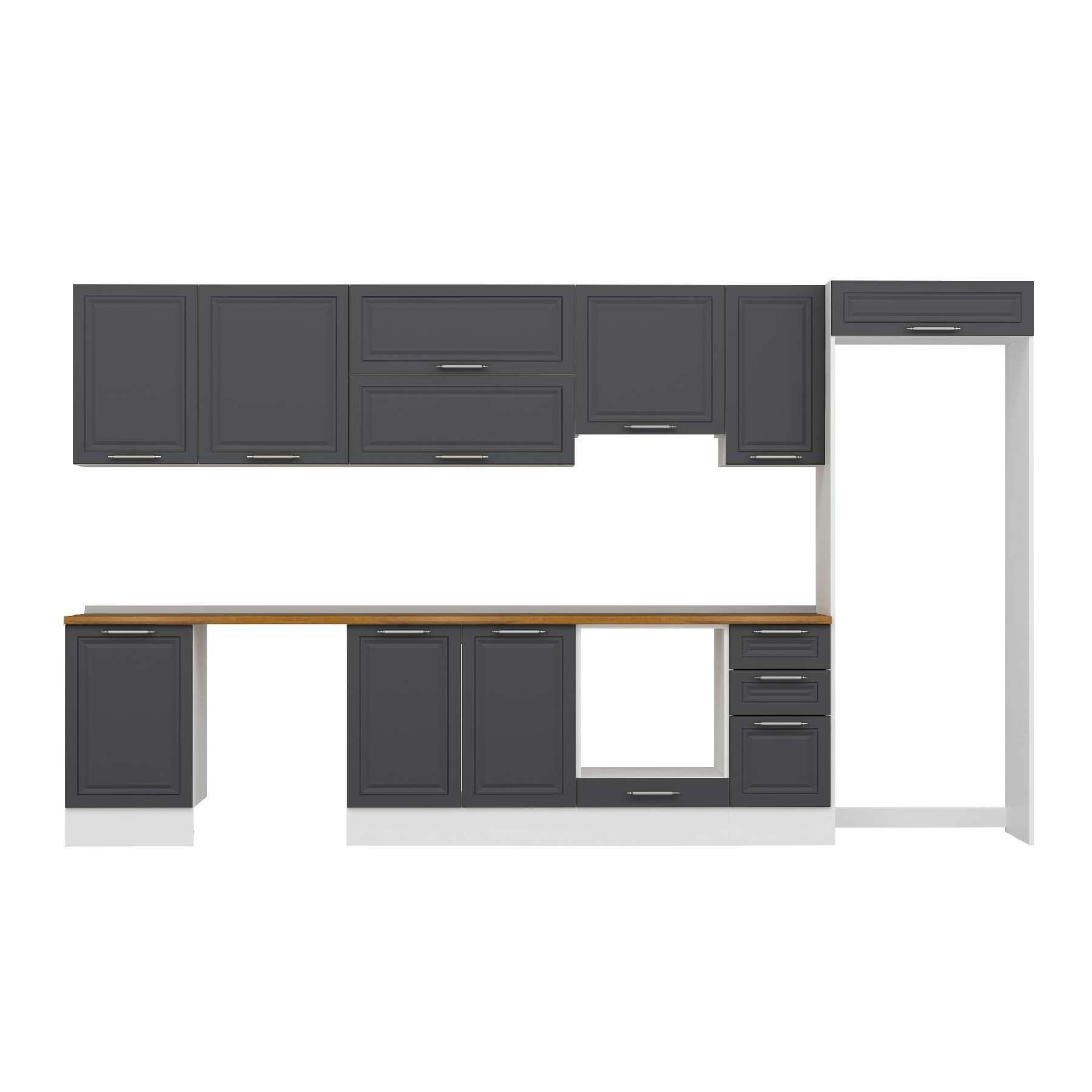 Alvinka 380X222 Cm Klasik Mebran Mutfak Dolabı Mb-E90S50S40-1 Mebran | Antrasit - Suntalam