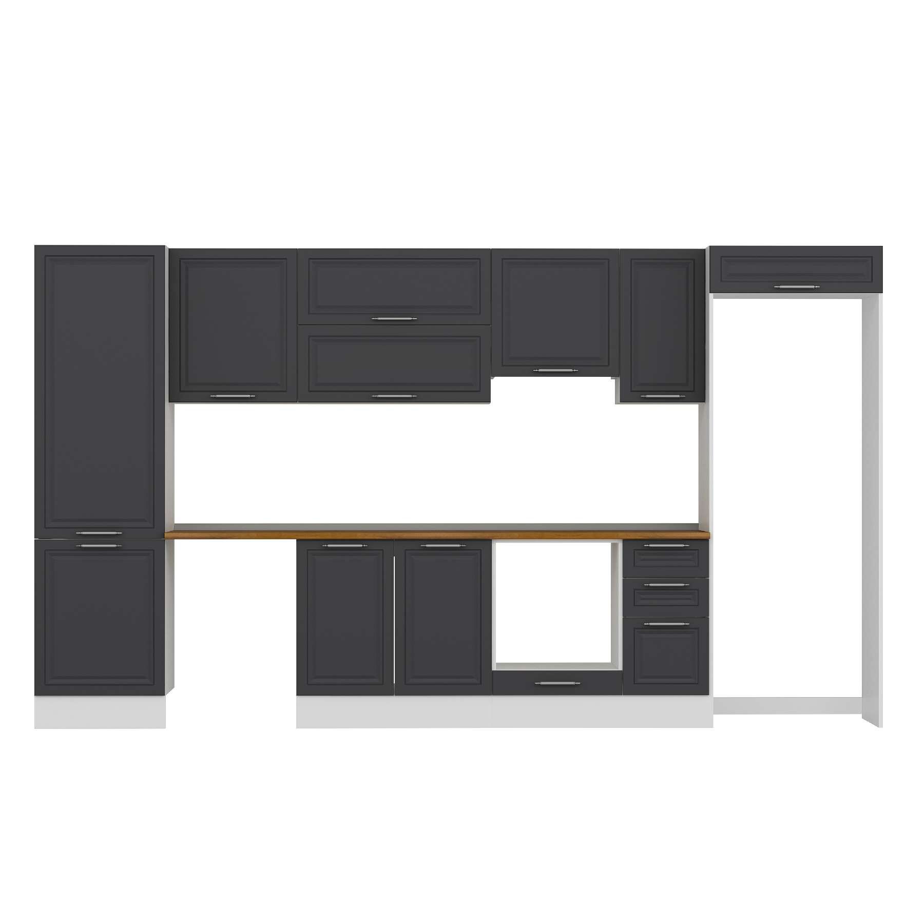 Alvinka 380X222 Cm Klasik Mebran Mutfak Dolabı Mbb-E80B60S40-1 Mebran | Antrasit - Mdf