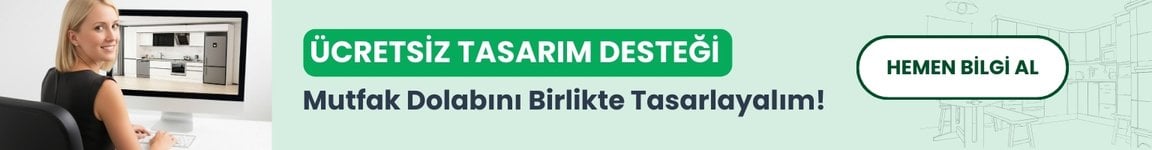 Hazır mutfak dolaplarımız, özel ölçü üretim seçeneği ile mutfağınıza tam uyum sağlayacak şekilde üretilmektedir. Tamamen ücretsiz ve profesyonel tasarım desteğimiz sayesinde, mutfağınızı en verimli ve estetik şekilde planlıyoruz.