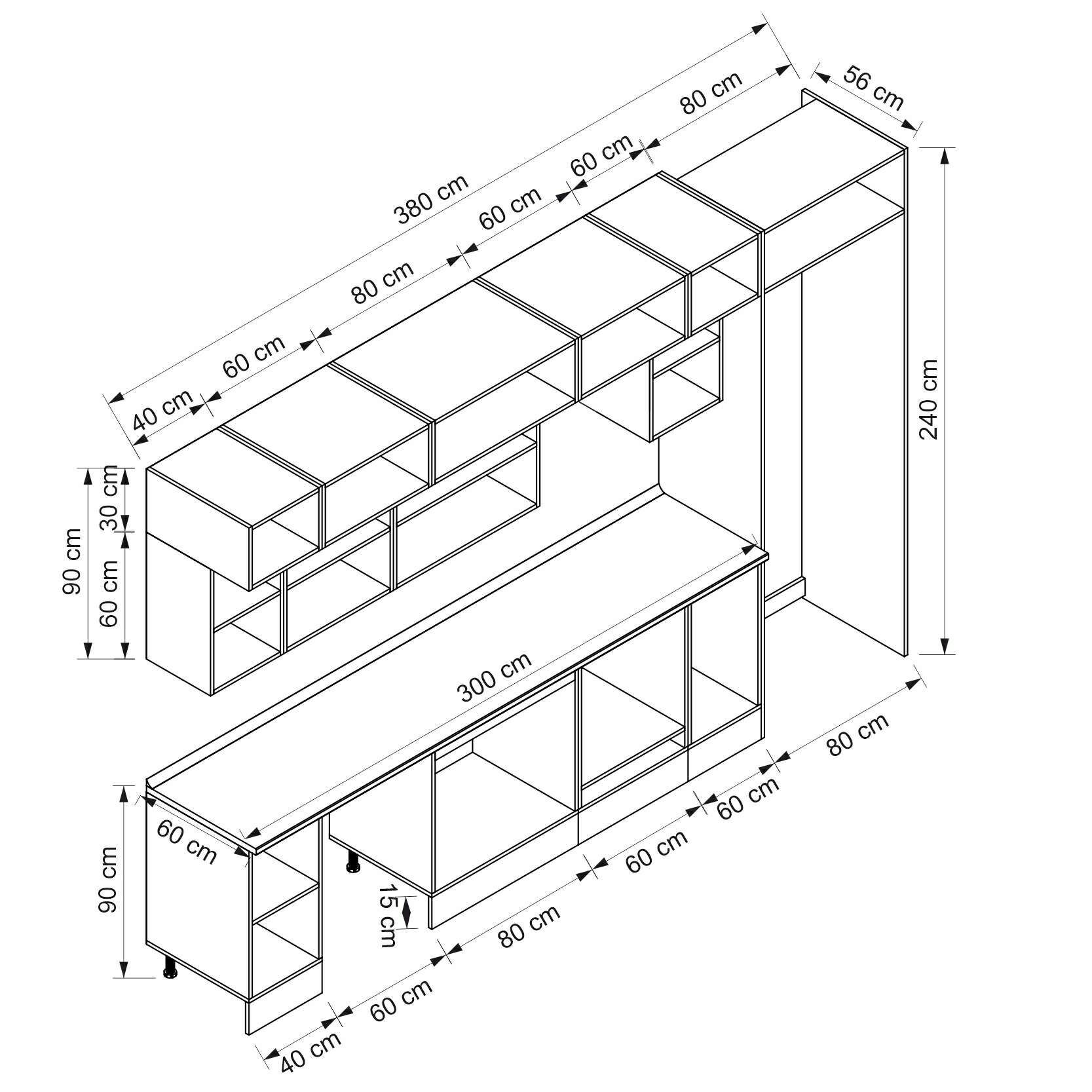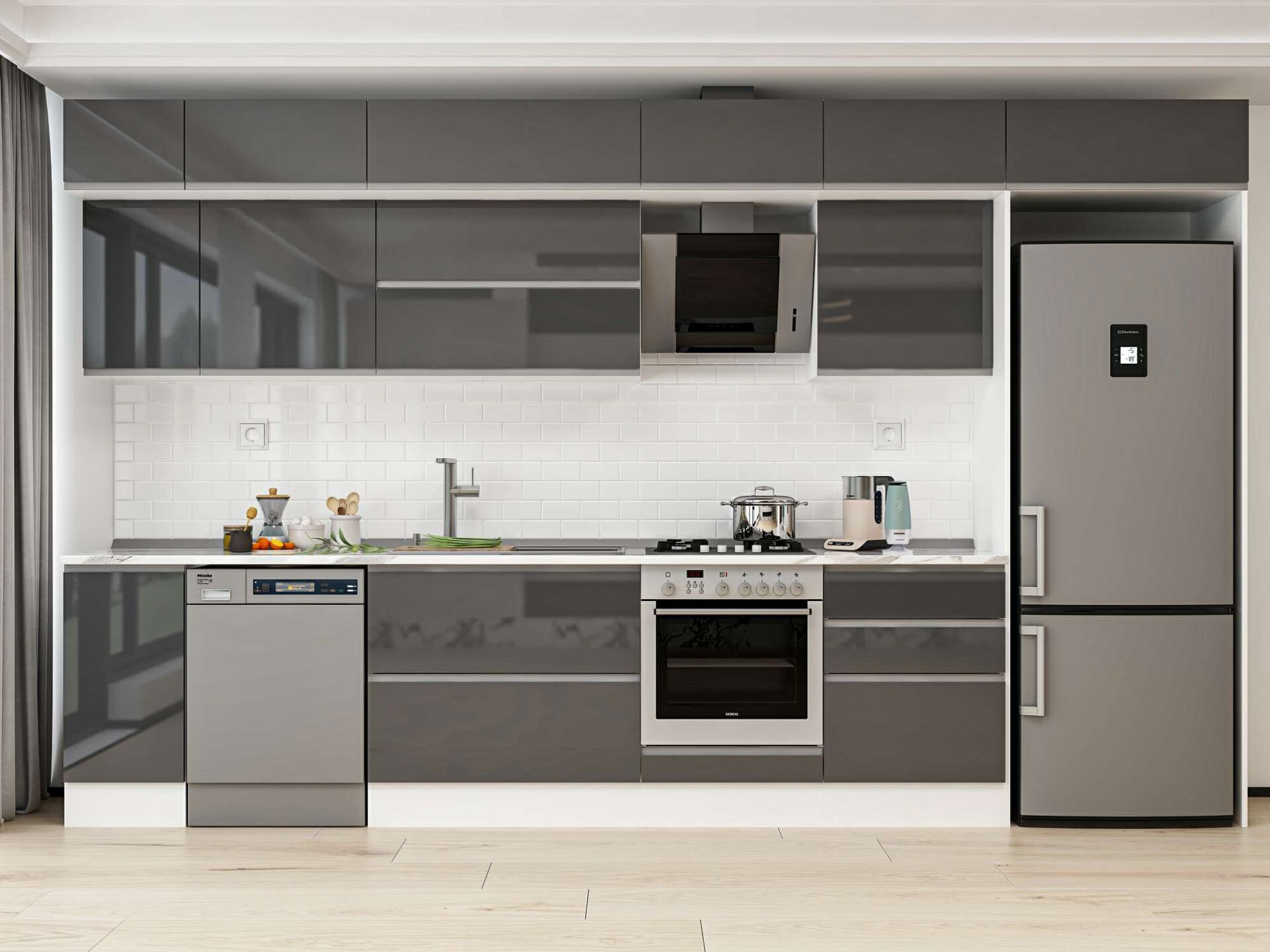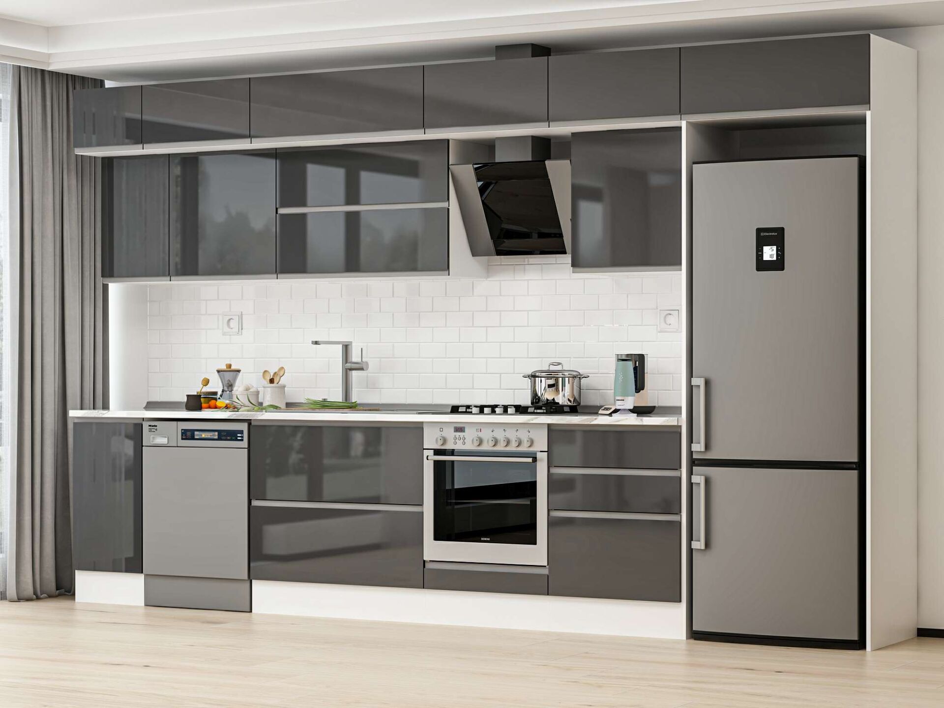 Alvinka 380X240 Cm High Gloss Mutfak Dolabı Mb-E80S40S60-2 High Gloss | Antrasit - Mdf