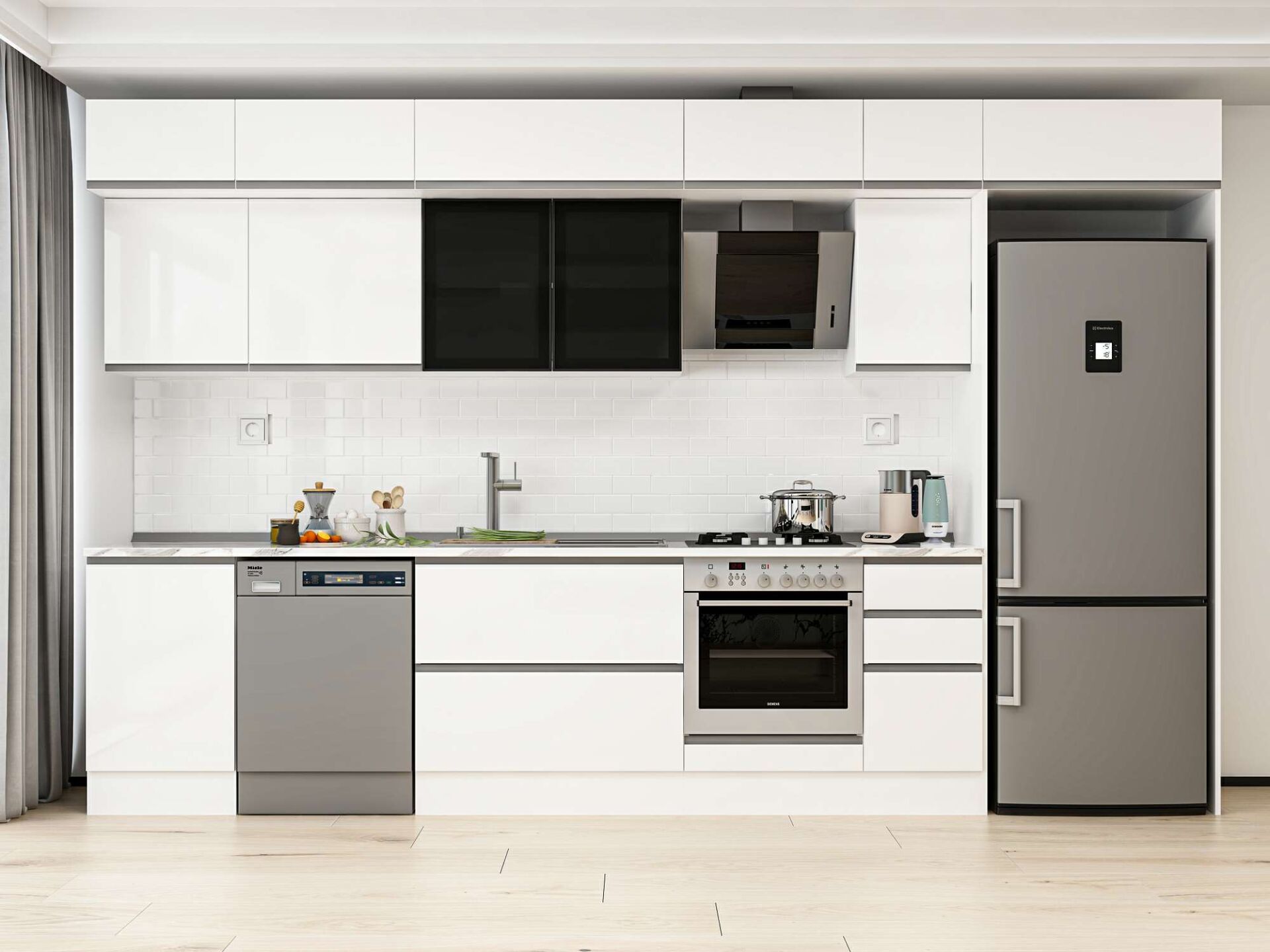 Alvinka 380X240 Cm High Gloss Mutfak Dolabı Mb-E90S50S40-3 High Gloss | Beyaz - Mdf