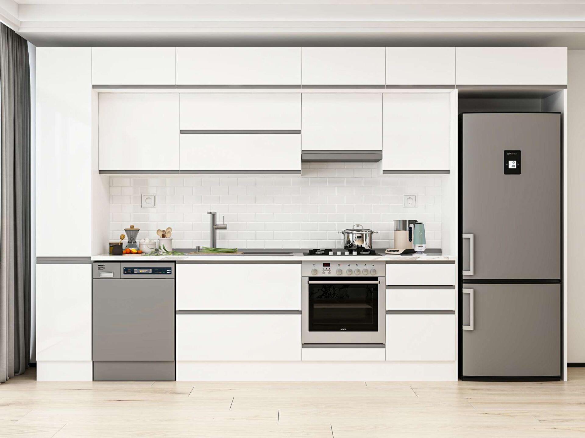 Alvinka 380X240 Cm High Gloss Mutfak Dolabı Mbb-E90B40S50-1 High Gloss | Beyaz - Mdf