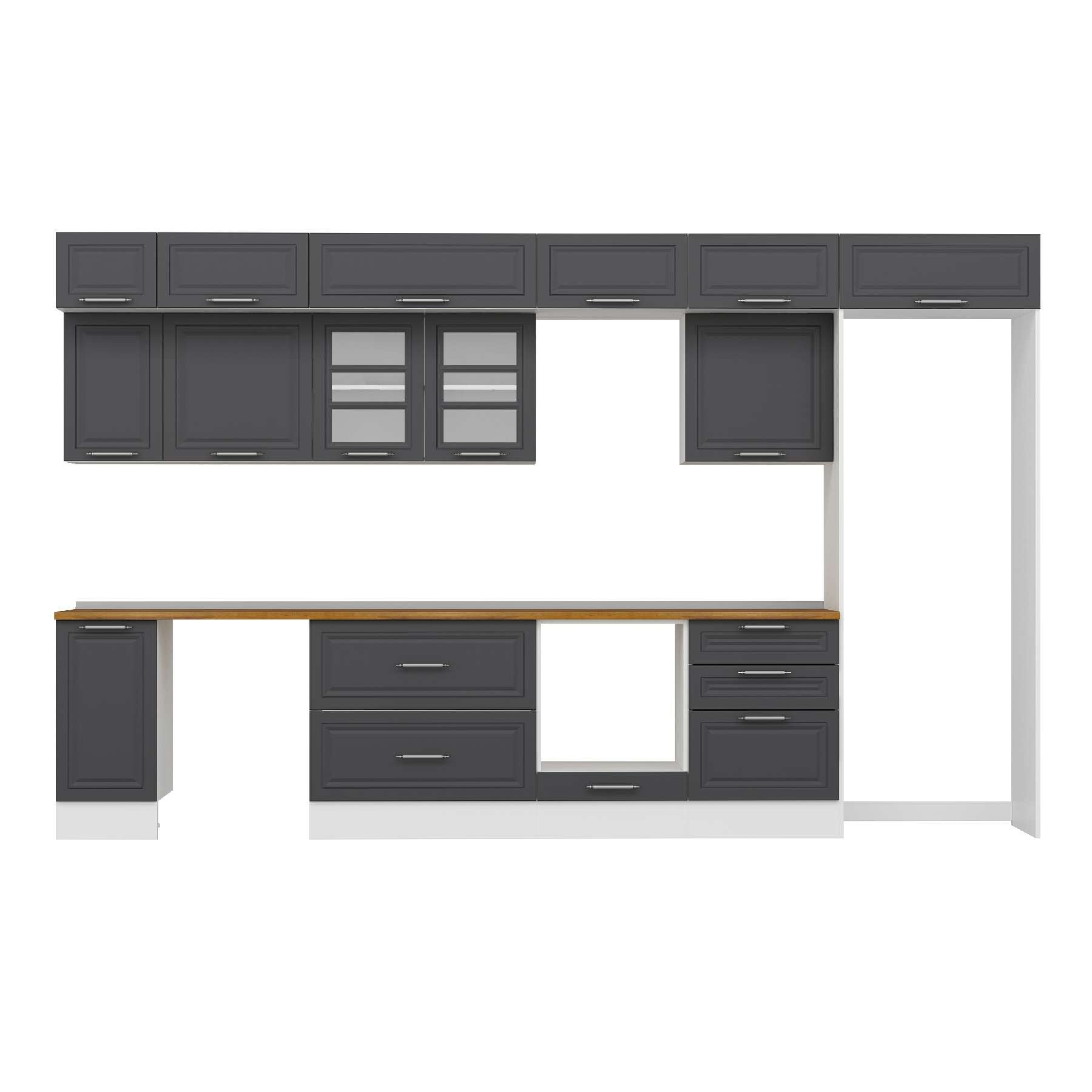 Alvinka 380X240 Cm Klasik Mebran Mutfak Dolabı Mb-E80S40S60-3 Mebran | Antrasit - Mdf