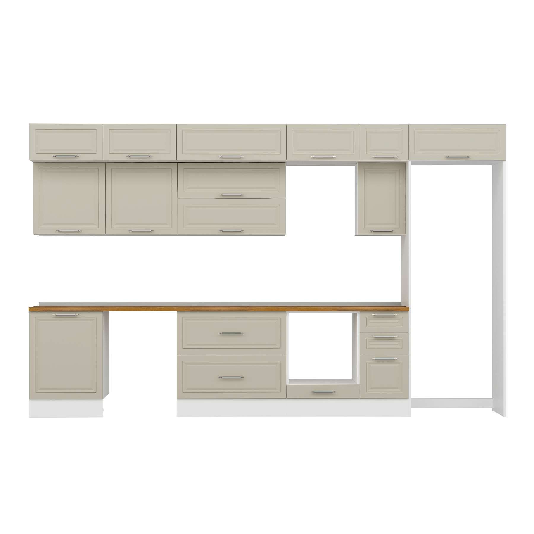 Alvinka 380X240 Cm Klasik Mebran Mutfak Dolabı Mb-E80S60S40-2 Mebran | Kumtaşı - Mdf