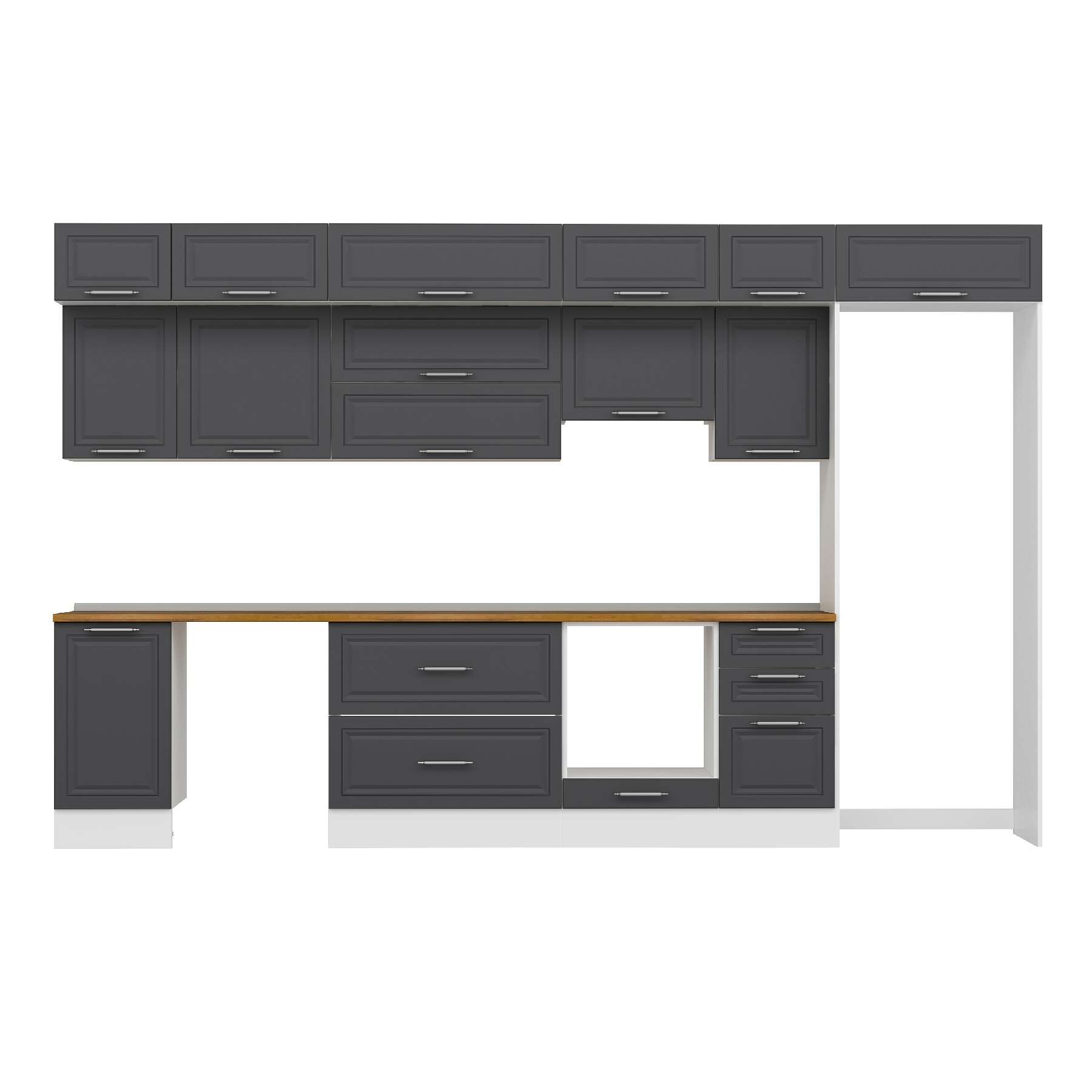 Alvinka 380X240 Cm Klasik Mebran Mutfak Dolabı Mb-E90S45S45-1 Mebran | Antrasit - Mdf