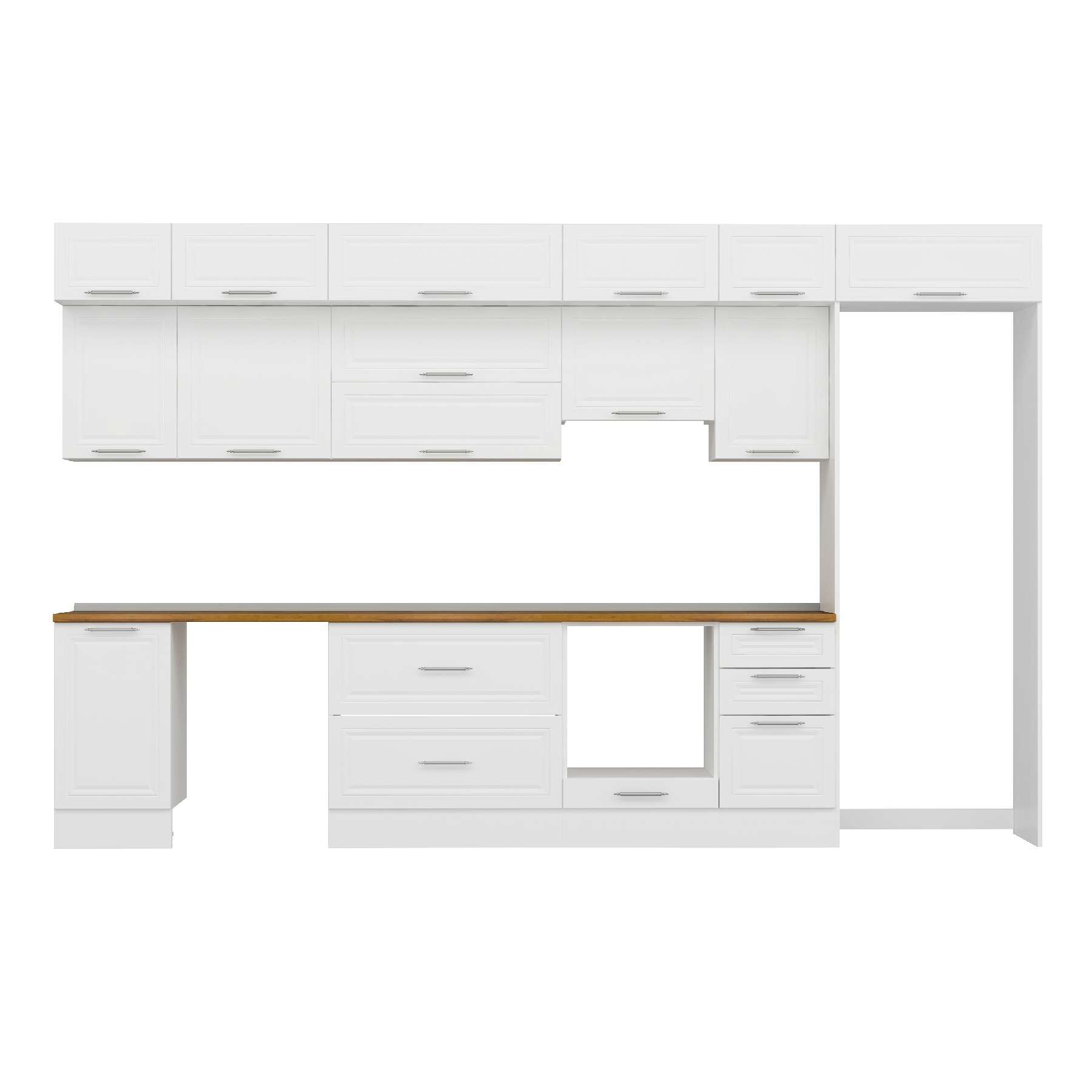 Alvinka 380X240 Cm Klasik Mebran Mutfak Dolabı Mb-E90S45S45-1 Mebran | Beyaz - Mdf