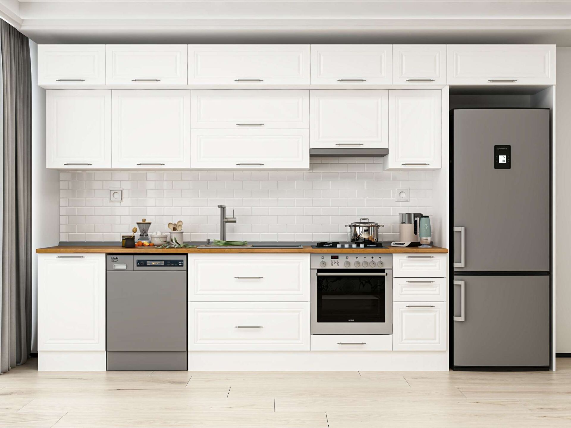 Alvinka 380X240 Cm Klasik Mebran Mutfak Dolabı Mb-E90S50S40-1 Mebran | Beyaz - Mdf