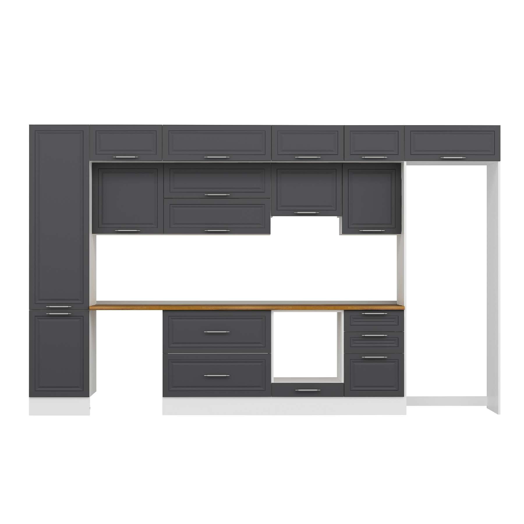 Alvinka 380X240 Cm Klasik Mebran Mutfak Dolabı Mbb-E80B50S50-1 Mebran | Antrasit - Mdf