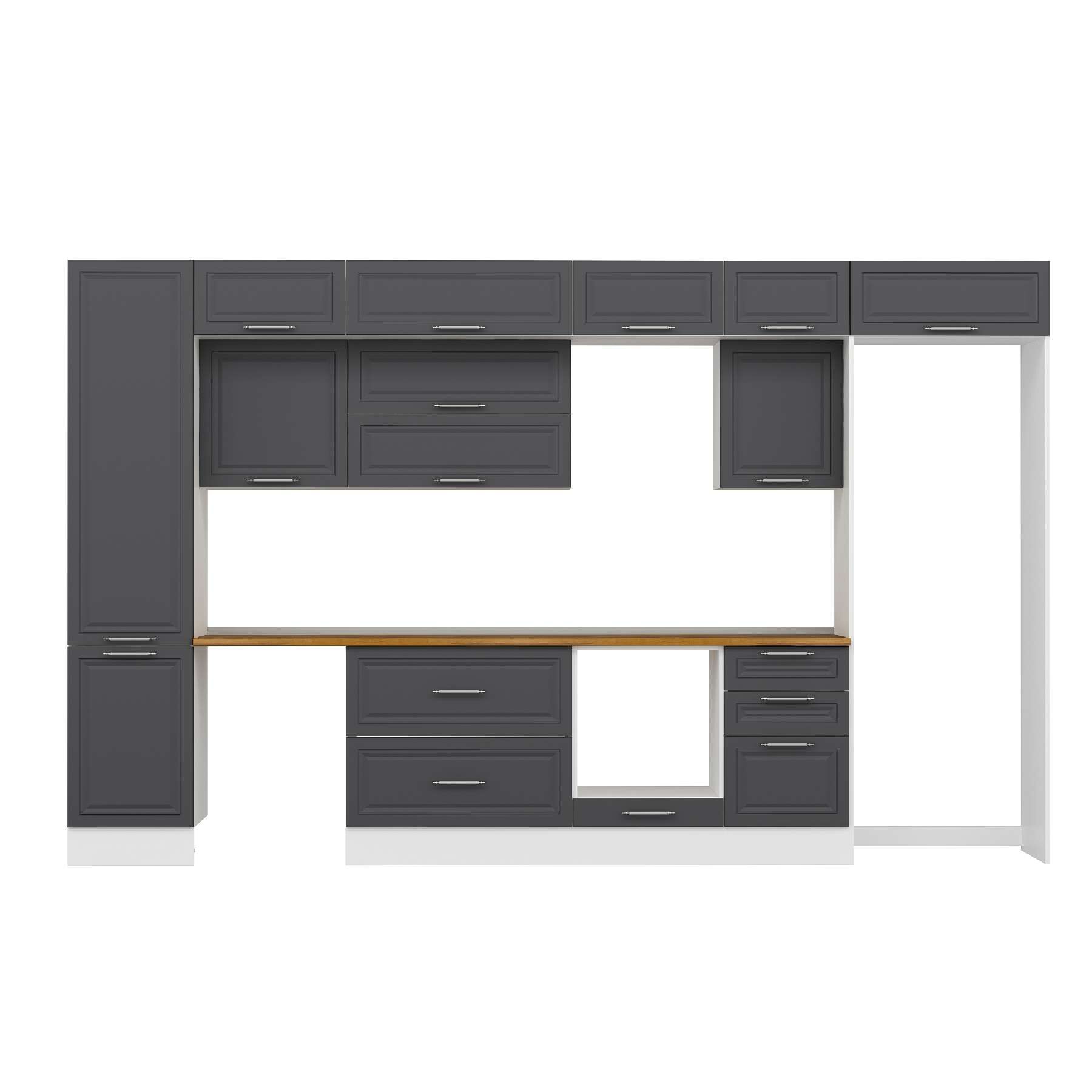Alvinka 380X240 Cm Klasik Mebran Mutfak Dolabı Mbb-E80B50S50-2 Mebran | Antrasit - Mdf