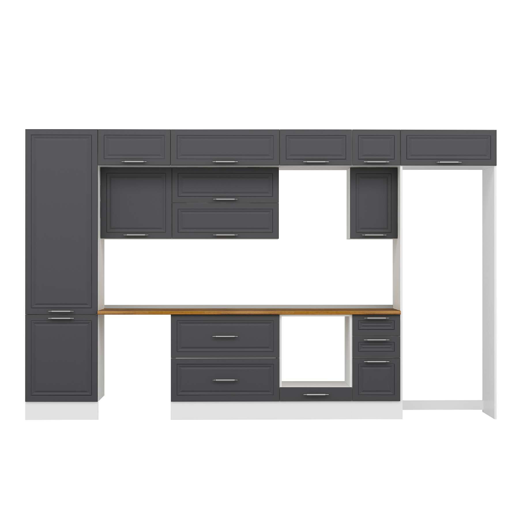 Alvinka 380X240 Cm Klasik Mebran Mutfak Dolabı Mbb-E80B60S40-2 Mebran | Antrasit - Mdf