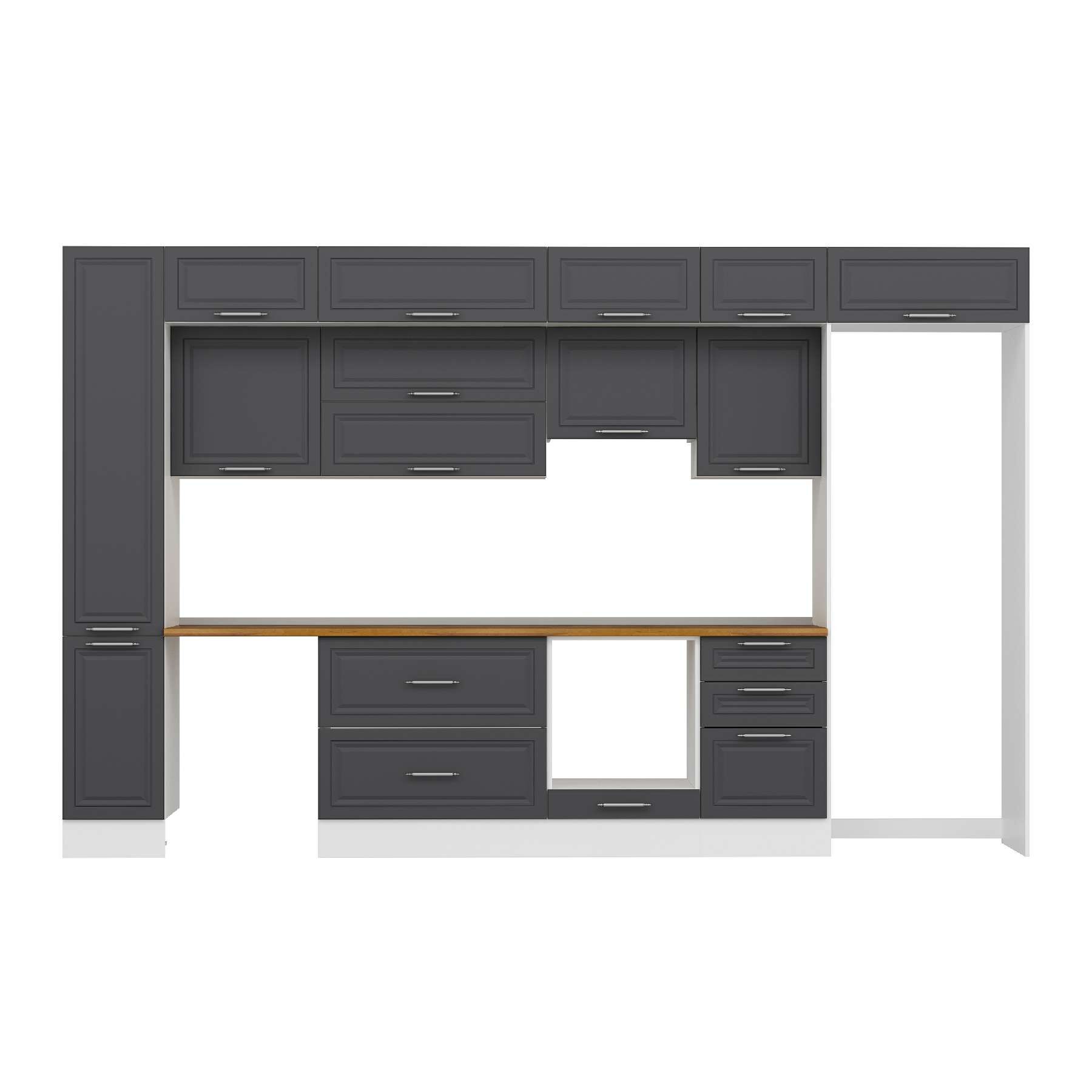 Alvinka 380X240 Cm Klasik Mebran Mutfak Dolabı Mbb-E90B40S50-1 Mebran | Antrasit - Suntalam